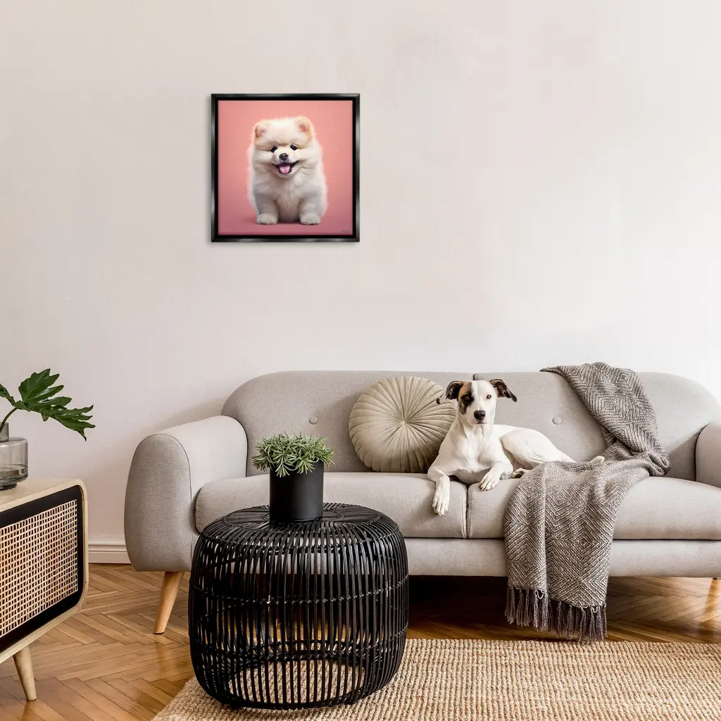 Stupell Fluffy Puppy On Pink Framed Floater Canvas Wall Art Design By Rb - 25 X 25 - Black