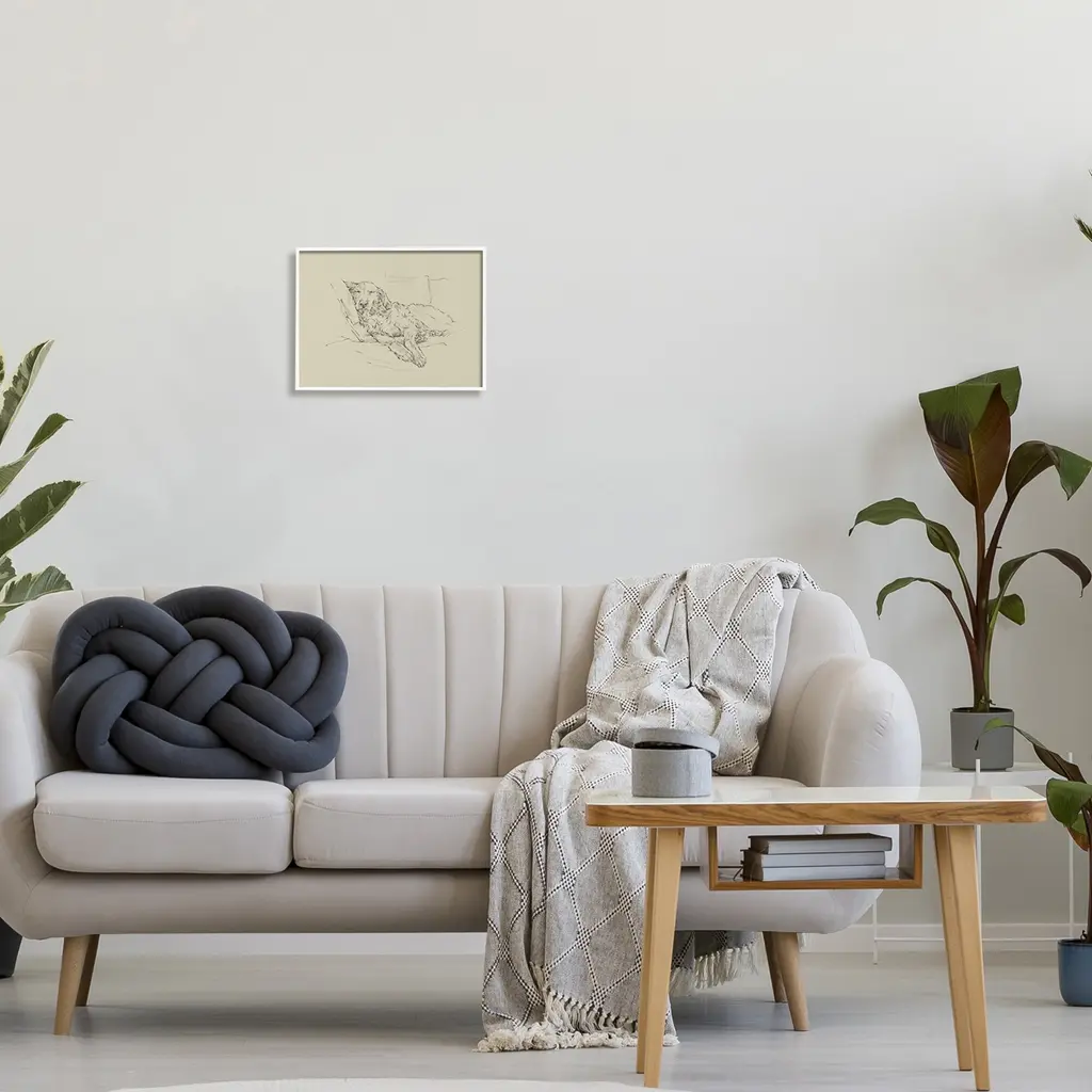 Stupell Fluffy Retriever Napping Cushions Casual Monochromatic Dog Sketch Framed Wall Art, Design By Ethan Harper - Black - 14 X 11 - White