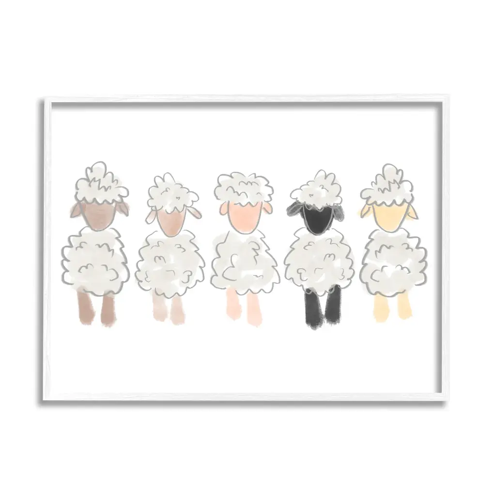 Stupell Fluffy Soft Sheep Farm Animal Nursery Drawing Framed Wall Art - Tan - 14 X 11 - Black