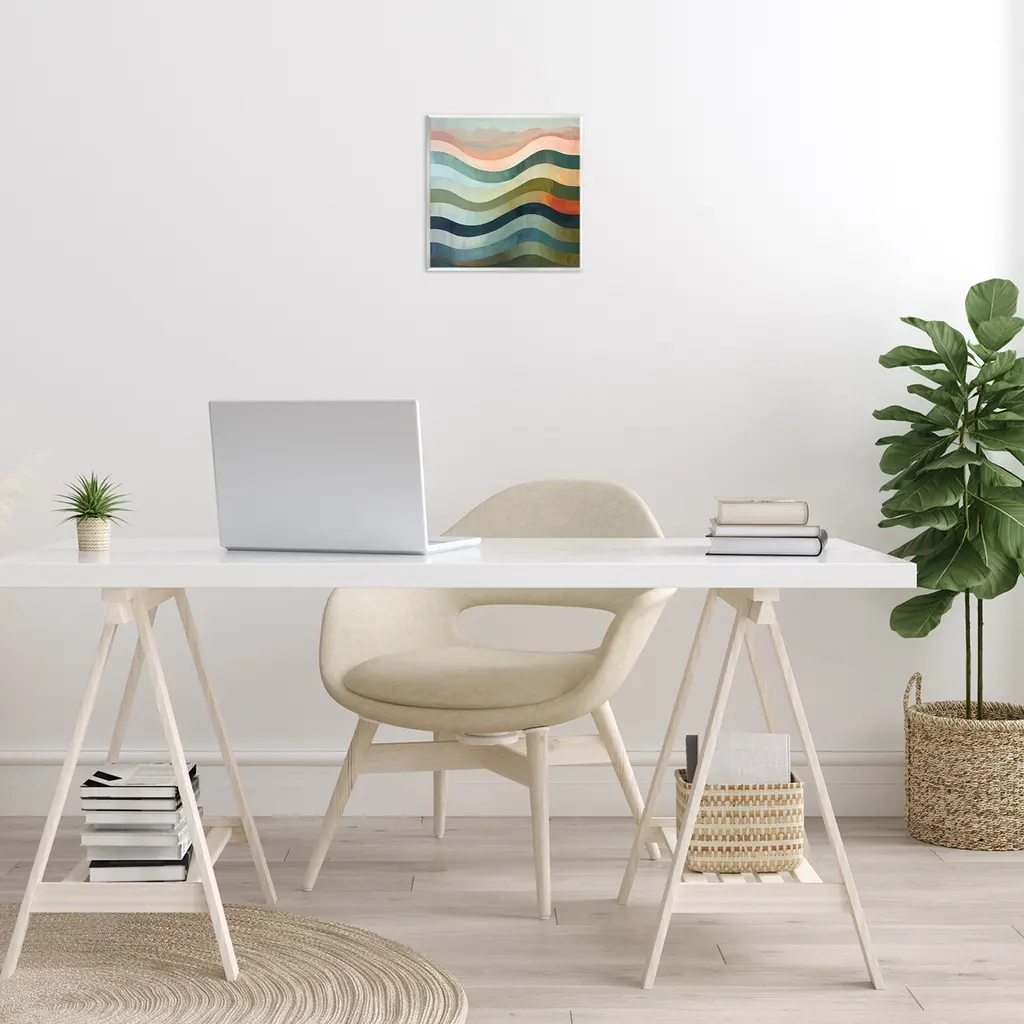 Our wall plaques start as high-quality lithograph prints mounted on durable 0.5-inch thick MDF wood. Each piece is hand finished and comes with a fresh layer of white foil on the sides to give it a crisp, clean look. Plaques arrive ready to hang without installation and come with removable plastic corners to keep them from damage in transit. Stupell Wall Art is made in the USA.Features: Dimensions: 12 x 0.5 x 12 InchesWall Art is Ready to Hang with Hardware Free Hanging. No installation required. For Easy Set Up Lean or Layer Artwork on Shelf or Against Wall.All of our wall plaques start off as high quality lithograph prints that are then mounted on durable 0.5 inch thick MDF wood. Each piece is hand finished and comes with a fresh layer of foil on the sides to give it a crisp clean look. Made In USA.Artwork Relates To: Abstract, Modern, Pattern, Stripes, Wave, SouthwesternDesign by Lazar Studio