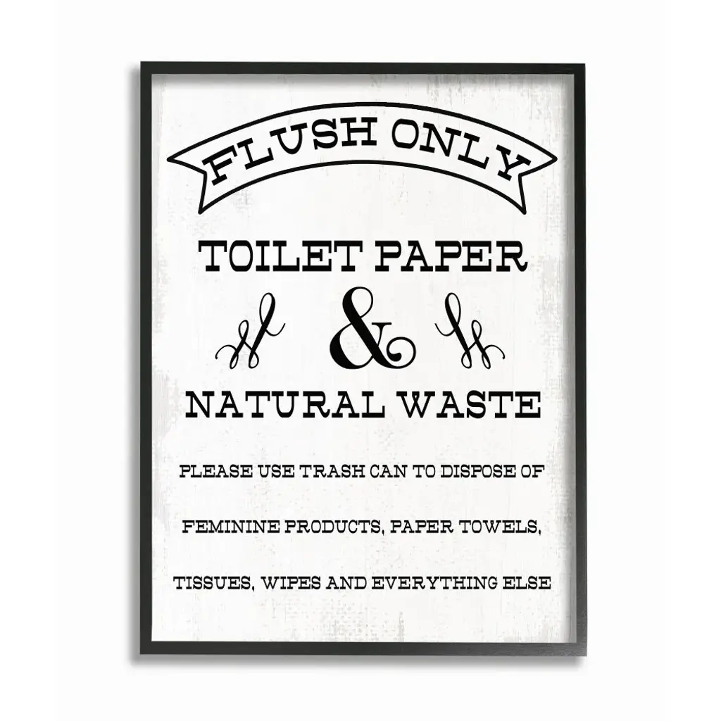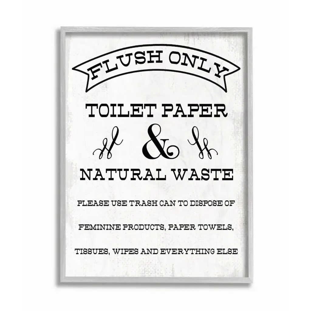 Stupell Flush Only Rustic Bathroom Sign Framed Wall Art - Black - 11 X 14 - Grey