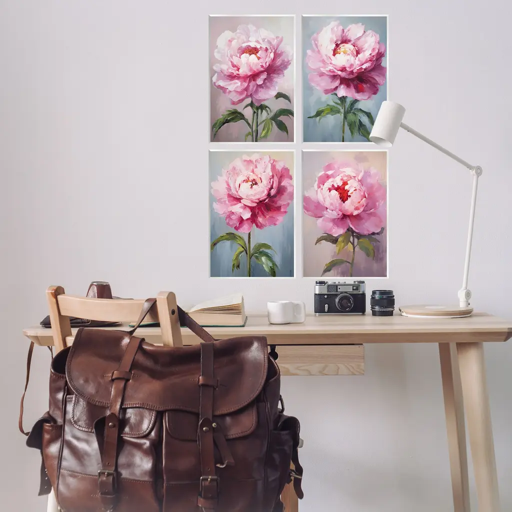 Fill any space with Stupell Wall Art Sets. Our wall plaques start as high-quality lithograph prints mounted on durable 0.5-inch thick MDF wood. Each piece is hand finished and comes with a fresh layer of white foil on the sides to give it a crisp, clean look. Plaques arrive ready to hang without installation and come with removable plastic corners to keep them from damage in transit. Stupell Wall Art is made in the USA.Features: Dimensions: 4 Piece Set, Each Panel is 10 x 0.5 x 15 InchesFour Piece Wall Plaque Sets are available as 10"x15" or 13"x19" Panels. All wall plaques have a 0.5" Depth.Wall Art is Ready to Hang with Hardware Free Hanging. No installation required. For Easy Set Up Lean or Layer Artwork on Shelf or Against Wall.All of our wall plaques start off as high quality lithograph prints that are then mounted on durable 0.5 inch thick MDF wood. Each piece is hand finished and comes with a fresh layer of foil on the sides to give it a crisp clean look. Made In USA.Artwork Relates To: Flower, Plant, Peony, Painting, Carnation, Dahlia, Flower, Plant, Peony, Person, RoseDesign by Petal Prints Design