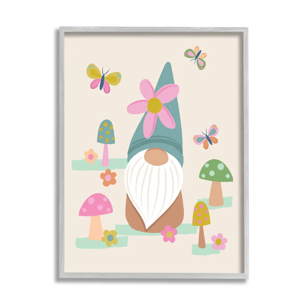 Stupell Fluttering Butterflies Mushroom Garden Gnome Pink Flowers Framed Wall Art - Off-White - 16 X 20 - Black