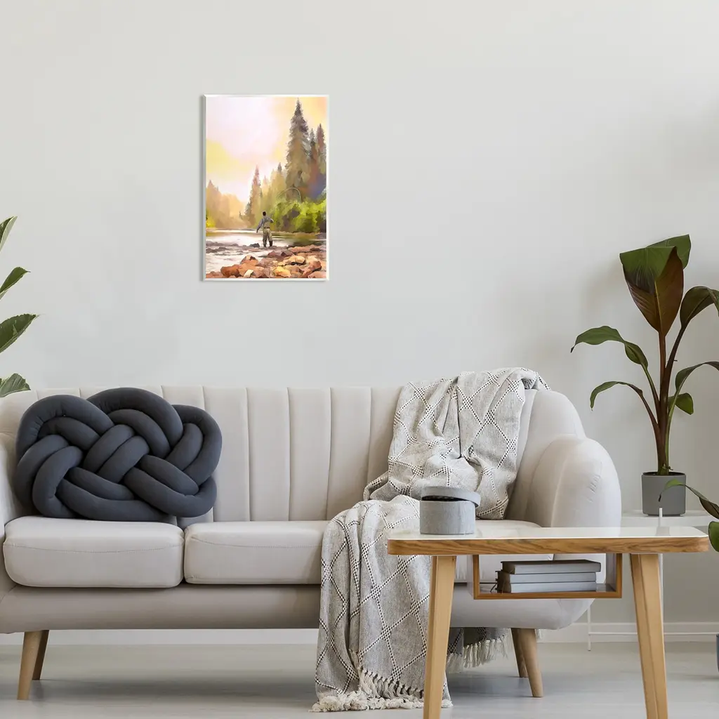 Our wall plaques start as high-quality lithograph prints mounted on durable 0.5-inch thick MDF wood. Each piece is hand finished and comes with a fresh layer of white foil on the sides to give it a crisp, clean look. Plaques arrive ready to hang without installation and come with removable plastic corners to keep them from damage in transit. Stupell Wall Art is made in the USA.Features: Dimensions: 10 x 0.5 x 15 InchesWall Plaque Sizes Include Standard: 10 x 0.5 x 15 Oversized: 13 x 0.5 x 19Wall Art is Ready to Hang with Hardware Free Hanging. No installation required. For Easy Set Up Lean or Layer Artwork on Shelf or Against Wall.All of our wall plaques start off as high quality lithograph prints that are then mounted on durable 0.5 inch thick MDF wood. Each piece is hand finished and comes with a fresh layer of foil on the sides to give it a crisp clean look. Made In USA.Artwork Relates To: Fishing, Water, Angler, Person, Male, Man, Nature, Wilderness, Land, Plant, Tree, Vegetation, WoodlandDesign by Amy Hall