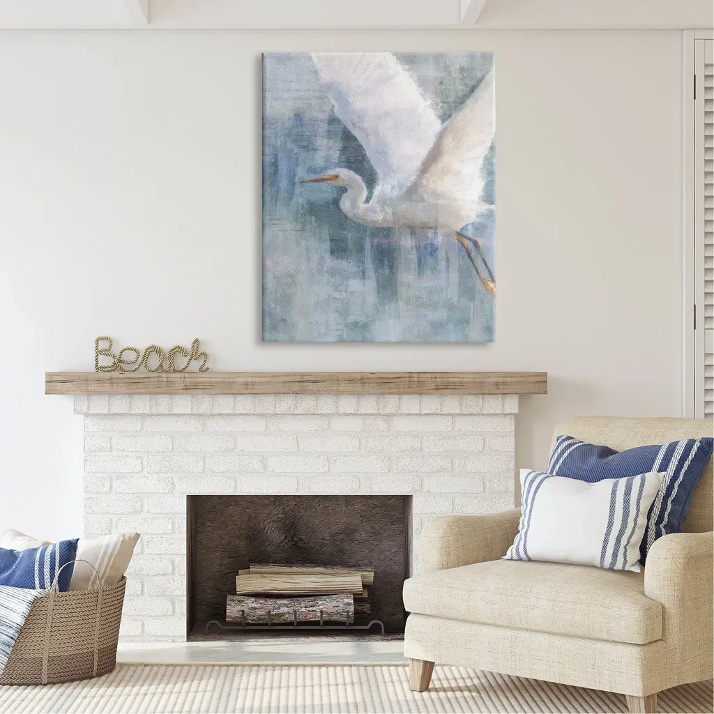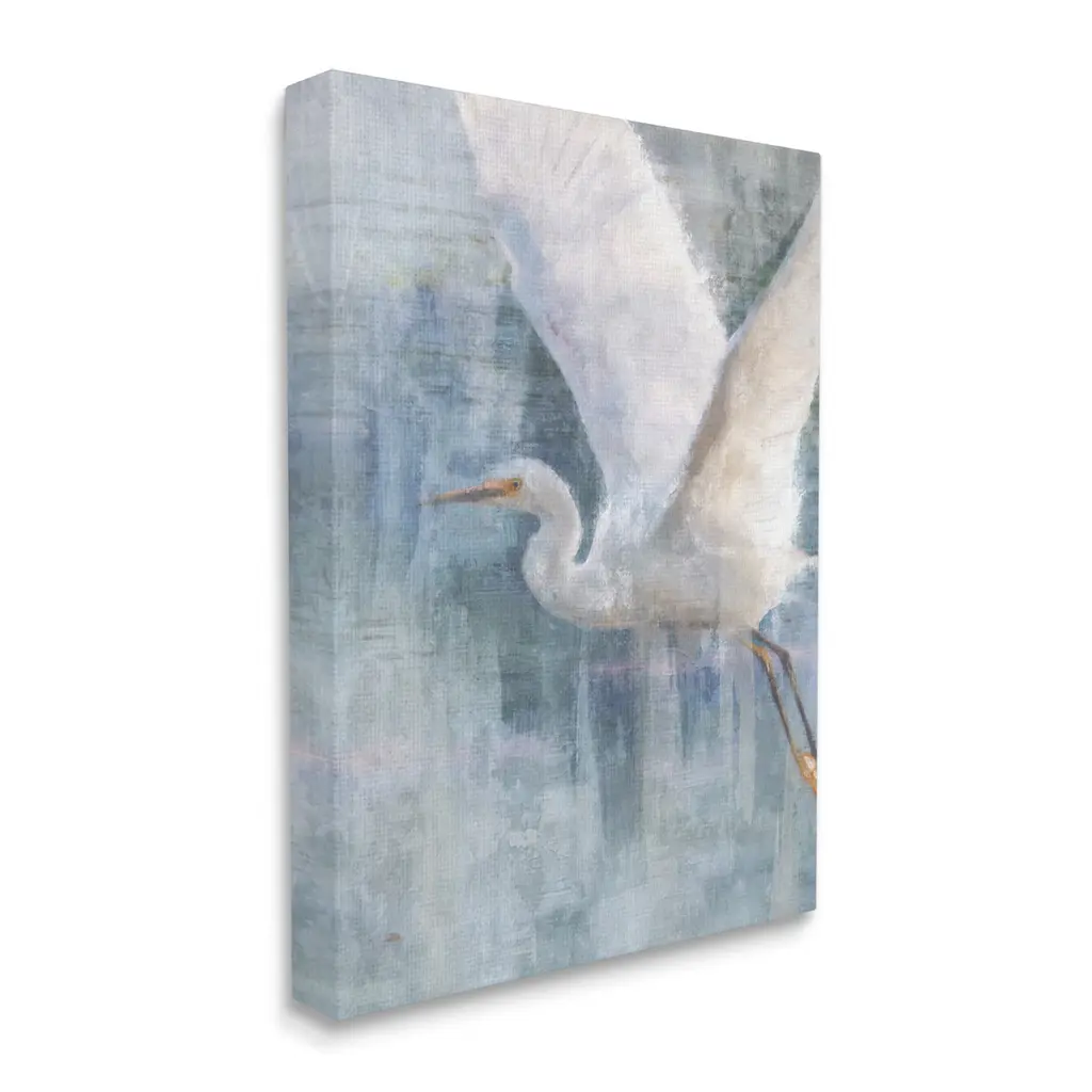 We create our stretched canvas to the highest standards. Using only the highest quality inks and canvas on Mimaki printers, we hand-cut and stretch each piece over a 1.5-inch thick wooden frame for hanging. As a result, the art comes ready to hang on the sturdy ledge with no installation required. Stupell Wall Art is made in the USA.Features: Dimensions: 16 x 1.5 x 20 InchesStretched Canvas Sizes Include Standard: 16 x 1.5 x 20 Large: 20 x 1.5 x 30 X-Large: 30 x 1.5 x 40 Oversized: 36 x 1.5 x 48Wall Art is Ready to Hang - No Installation or Hardware Needed. For Easy Set Up Lean or Layer Artwork on Shelf or Against Wall.Our stretched canvas is created with the highest standards. We use only the highest quality inks and canvas on our in house Mimaki printers, and then hand cut and stretch each piece over a 1.5 inch thick wooden frame for hanging. Made In USA.Artwork Relates To: Animal, Bird, Waterfowl, Crane Bird, Heron, Egret, CoastalDesign by Nina Blue