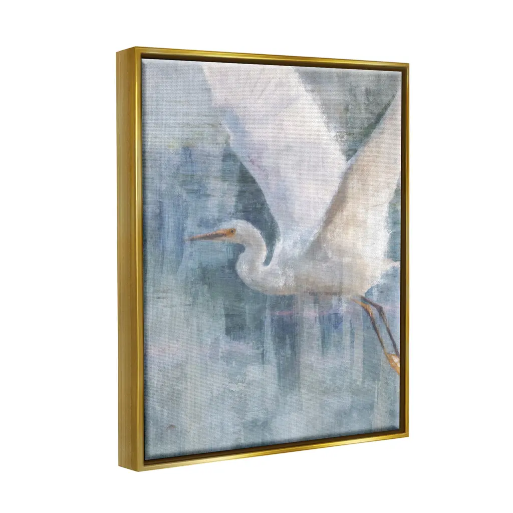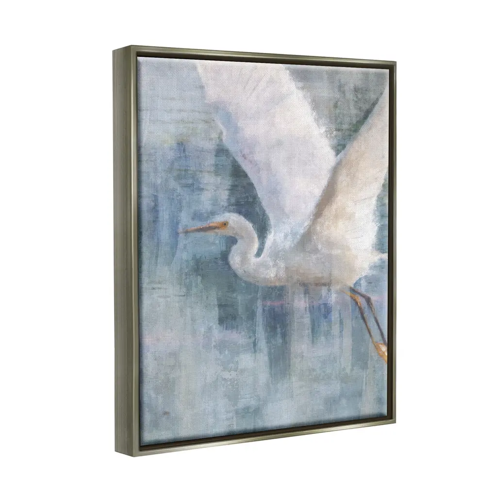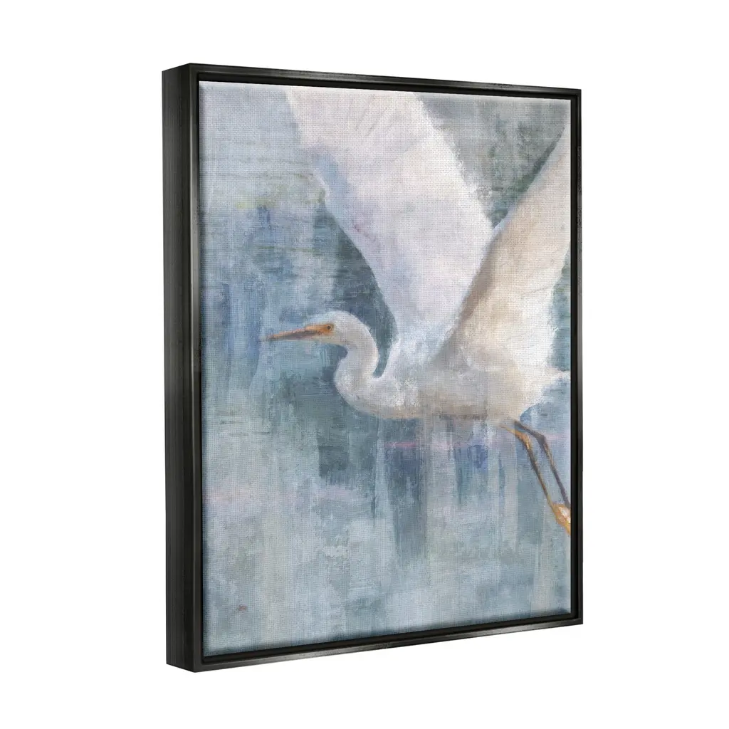 Elevate your home or office to the next level with Stupell Framed Floating Canvas Wall Art. Our premium hand-stretched canvas is mounted securely into a sturdy lightweight frame. The museum-style gap between the wrapped canvas and the box frame gives the illusion of floating artwork. Stupell Wall Art is made in the USA.Features: Dimensions: 17 x 1.7 x 21 Frame, 16 x 1.5 x 20 Canvas ArtFloating Frame Sizes Include Standard: 17 x 1.7 x 21 Oversized: 25 x 1.7 x 31Wall Art is Ready to Hang - No Installation or Hardware Needed. For Easy Set Up Lean or Layer Artwork on Shelf or Against Wall.Our elevated 1.7" Thick Floating Frame is the perfect complement to our canvas style Wall Art. We use only the highest quality inks in house with industry leading printing solutions. Canvas is hand stretched over a durable wood foundation and then mounted securly into a Modern Box Frame. Made in the USA.Artwork Relates To: Animal, Bird, Waterfowl, Crane Bird, Heron, Egret, CoastalDesign by Nina Blue