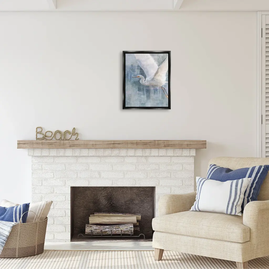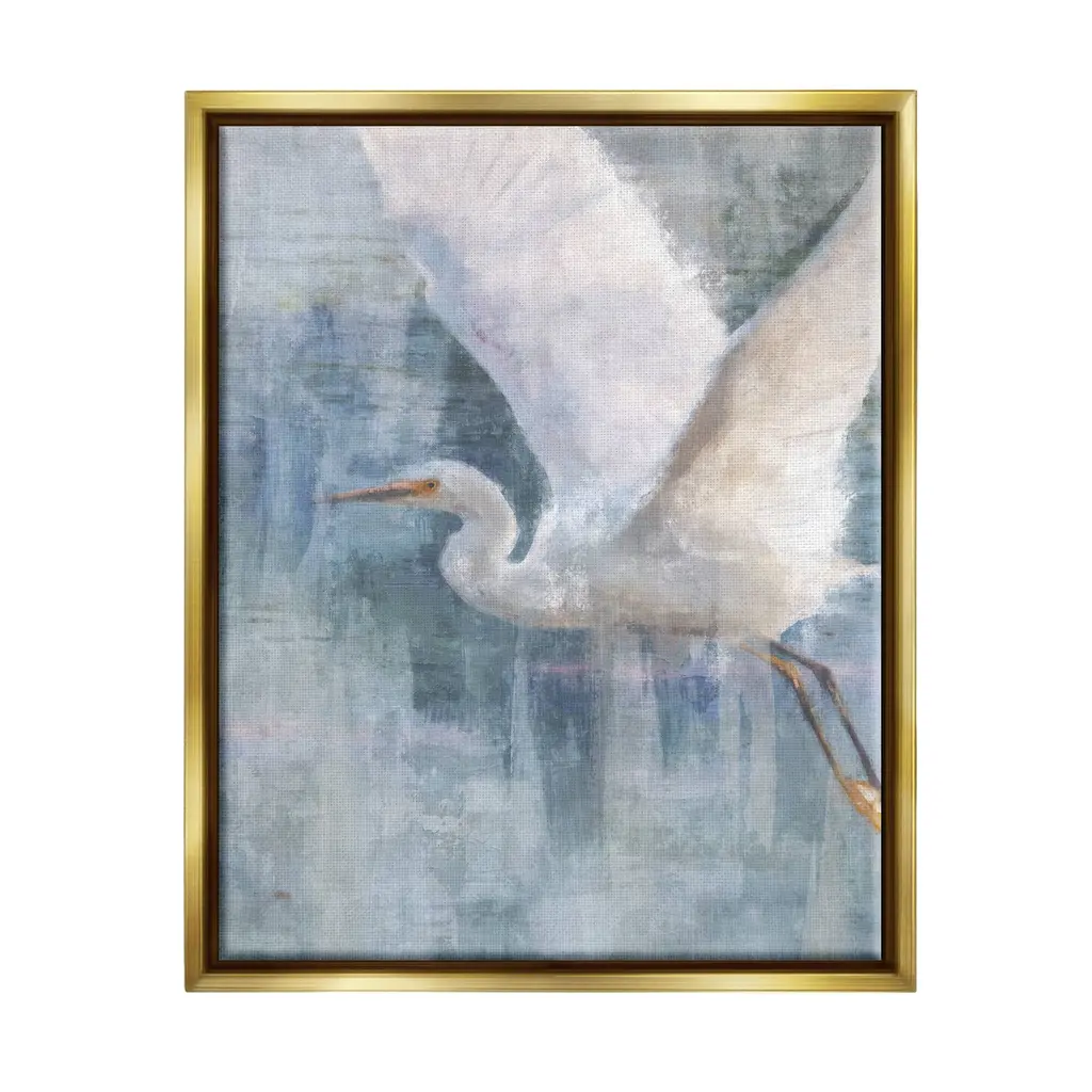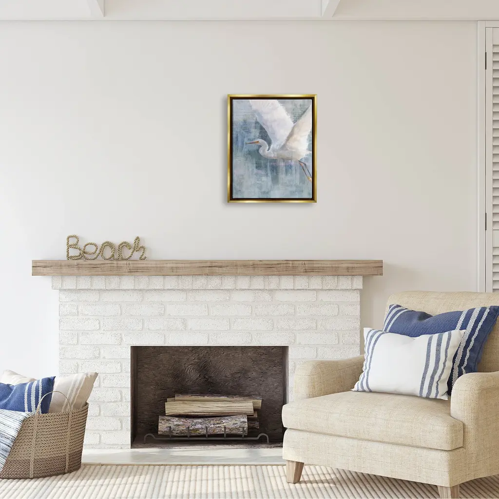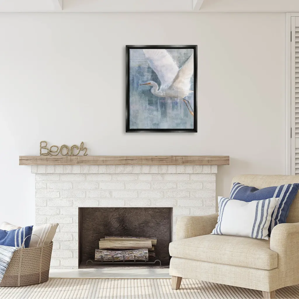 Elevate your home or office to the next level with Stupell Framed Floating Canvas Wall Art. Our premium hand-stretched canvas is mounted securely into a sturdy lightweight frame. The museum-style gap between the wrapped canvas and the box frame gives the illusion of floating artwork. Stupell Wall Art is made in the USA.Features: Dimensions: 17 x 1.7 x 21 Frame, 16 x 1.5 x 20 Canvas ArtFloating Frame Sizes Include Standard: 17 x 1.7 x 21 Oversized: 25 x 1.7 x 31Wall Art is Ready to Hang - No Installation or Hardware Needed. For Easy Set Up Lean or Layer Artwork on Shelf or Against Wall.Our elevated 1.7" Thick Floating Frame is the perfect complement to our canvas style Wall Art. We use only the highest quality inks in house with industry leading printing solutions. Canvas is hand stretched over a durable wood foundation and then mounted securly into a Modern Box Frame. Made in the USA.Artwork Relates To: Animal, Bird, Waterfowl, Crane Bird, Heron, Egret, CoastalDesign by Nina Blue