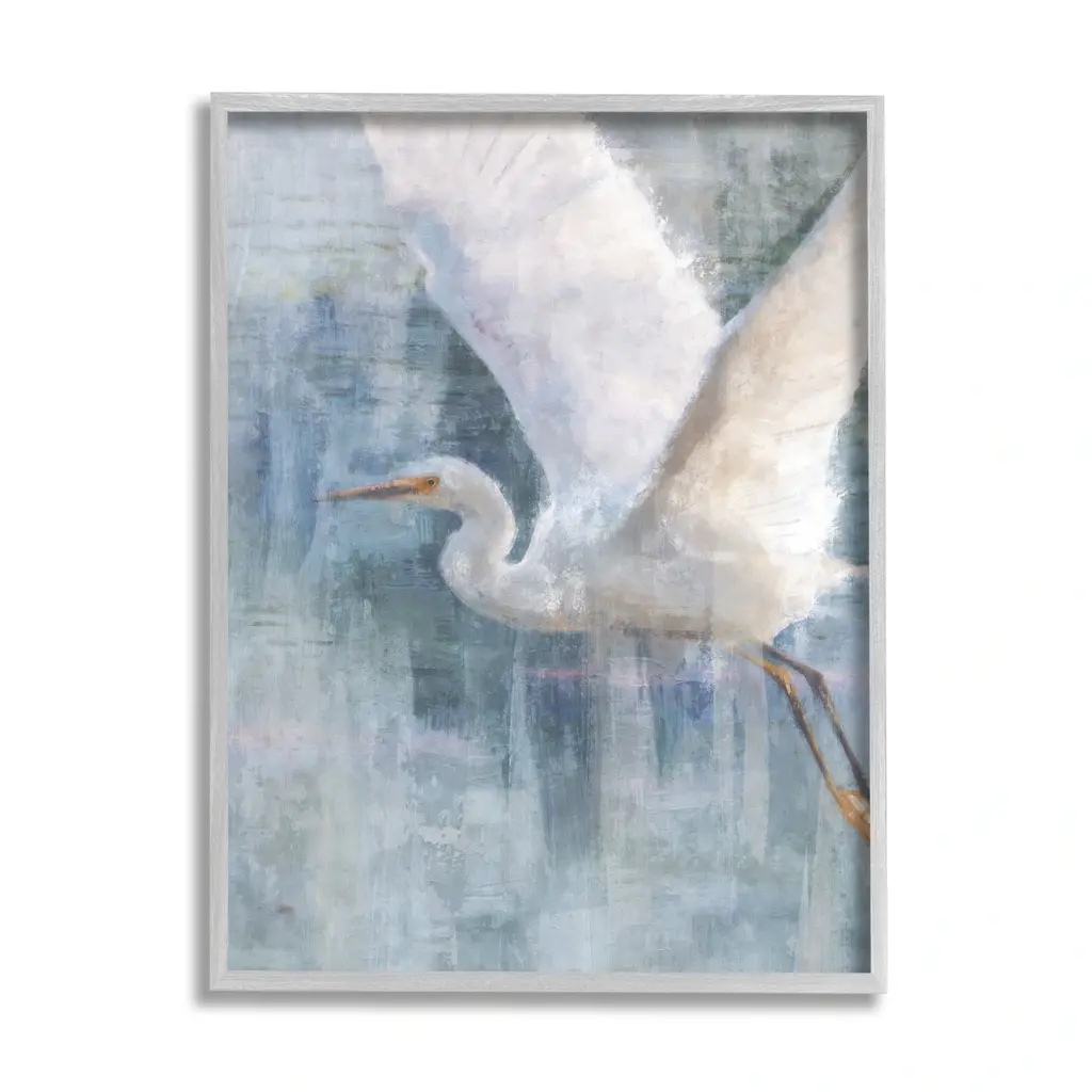 Add dimension to any room with our textured Framed Giclee Artwork. Our framed artwork is securely mounted into a 1.5-inch thick wood grain frame and ready to hang. Frames are available in three alluring styles: black, gray farmhouse and white. In addition, you should check out our oversized options if you want a statement piece. Stupell Wall Art is made in the USA.Features: Dimensions: 11 x 1.5 x 14 FramedFramed Giclee Sizes Include Standard: 11 x 1.5 x 14 Large: 16 x 1.5 x 20 Oversized: 24 x 1.5 x 30Wall Art is Ready to Hang - No Installation or Hardware Needed. For Easy Set Up Lean or Layer Artwork on Shelf or Against Wall.Our giclée prints are carefully mounted on a durable MDF backing, and then perfectly finished in a 1.5 inch thick woodgrain frame. Mounted frame colors include black, gray farmhouse and white. Made In USA.Artwork Relates To: Animal, Bird, Waterfowl, Crane Bird, Heron, Egret, CoastalDesign by Nina Blue
