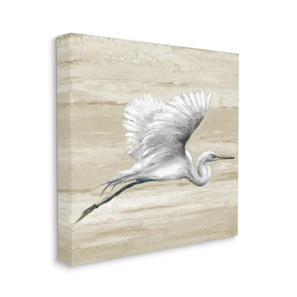 Stupell Flying Heron Sand Textured Background Natural Tones Canvas Wall Art - Grey - 36 X 36