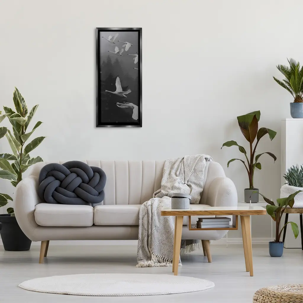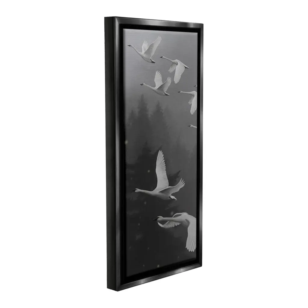 Elevate your home or office to the next level with Stupell Framed Floating Canvas Wall Art. Our premium hand-stretched canvas is mounted securely into a sturdy lightweight frame. The museum-style gap between the wrapped canvas and the box frame gives the illusion of floating artwork. Stupell Wall Art is made in the USA.Features: Dimensions: 11 x 1.7 x 25 Frame, 10 x 1.5 x 24 Canvas ArtFloating Frame Canvas Products are available in sizes 11"x25" and 14"x31". All Floating Frame Canvas Products have a 1.7" Depth.Wall Art is Ready to Hang with Hardware Free Hanging. No Installation required. For Easy Set Up Lean or Layer Artwork on Shelf or Against Wall. Artwork is Permently Fixed into the Frame.Our elevated 1.7" Thick Floating Frame is the perfect complement to our canvas style Wall Art. We use only the highest quality inks in house with industry leading printing solutions. Canvas is hand stretched over a durable wood foundation and then mounted securly into a Modern Box Frame. Made in the USA.Artwork Relates To: Animal, Bird, Flying, Egret, Heron, Waterfowl, Flock, Nature, Landscape, SwanDesign by Nene Thomas