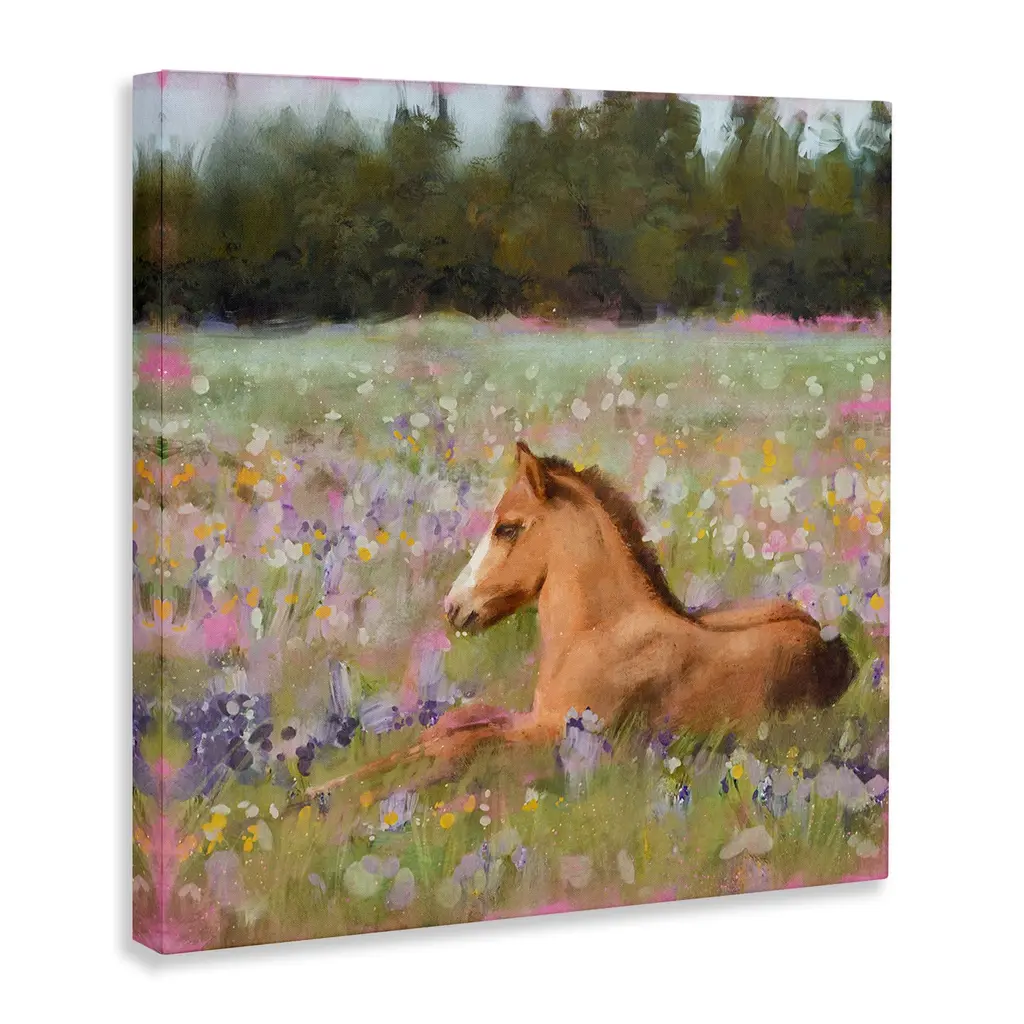 We create our stretched canvas to the highest standards. Using only the highest quality inks and canvas on Mimaki printers, we hand-cut and stretch each piece over a 1.5-inch thick wooden frame for hanging. As a result, the art comes ready to hang on the sturdy ledge with no installation required. Stupell Wall Art is made in the USA.Features: Dimensions: 17 x 1.5 x 17 InchesStretched Canvas Sizes Include Standard: 17 x 1.5 x 17 Large: 24 x 1.5 x 24 X-Large: 30 x 1.5 x 30 Oversized: 36 x 1.5 x 36Wall Art is Ready to Hang - No Installation or Hardware Needed. For Easy Set Up Lean or Layer Artwork on Shelf or Against Wall.Our stretched canvas is created with the highest standards. We use only the highest quality inks and canvas on our in house Mimaki printers, and then hand cut and stretch each piece over a 1.5 inch thick wooden frame for hanging. Made In USA.Artwork Relates To: Animal, Colt Horse, Horse, Mammal, Foal, Painting, Flower, Plant, Field, Grassland, Nature, MeadowDesign by Nina Blue