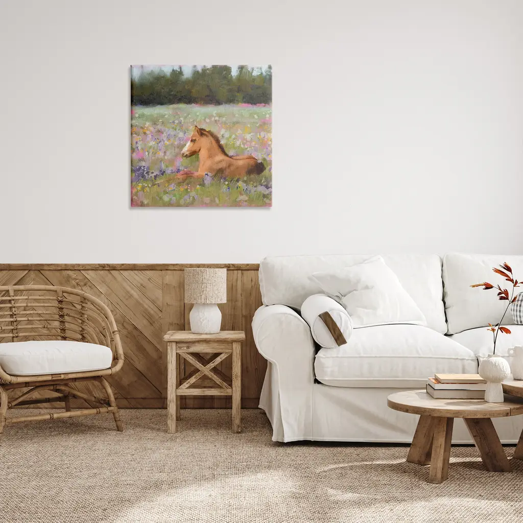 Stupell Foal Horse Lounging Flower Meadow Canvas Wall Art By Nina Blue - 30 X 30
