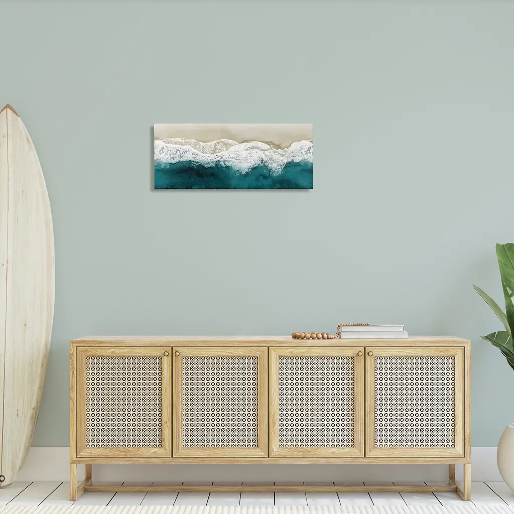 Stupell Foamy Beach Coast Deep Blue Ocean Water Canvas Wall Art - 30 X 13