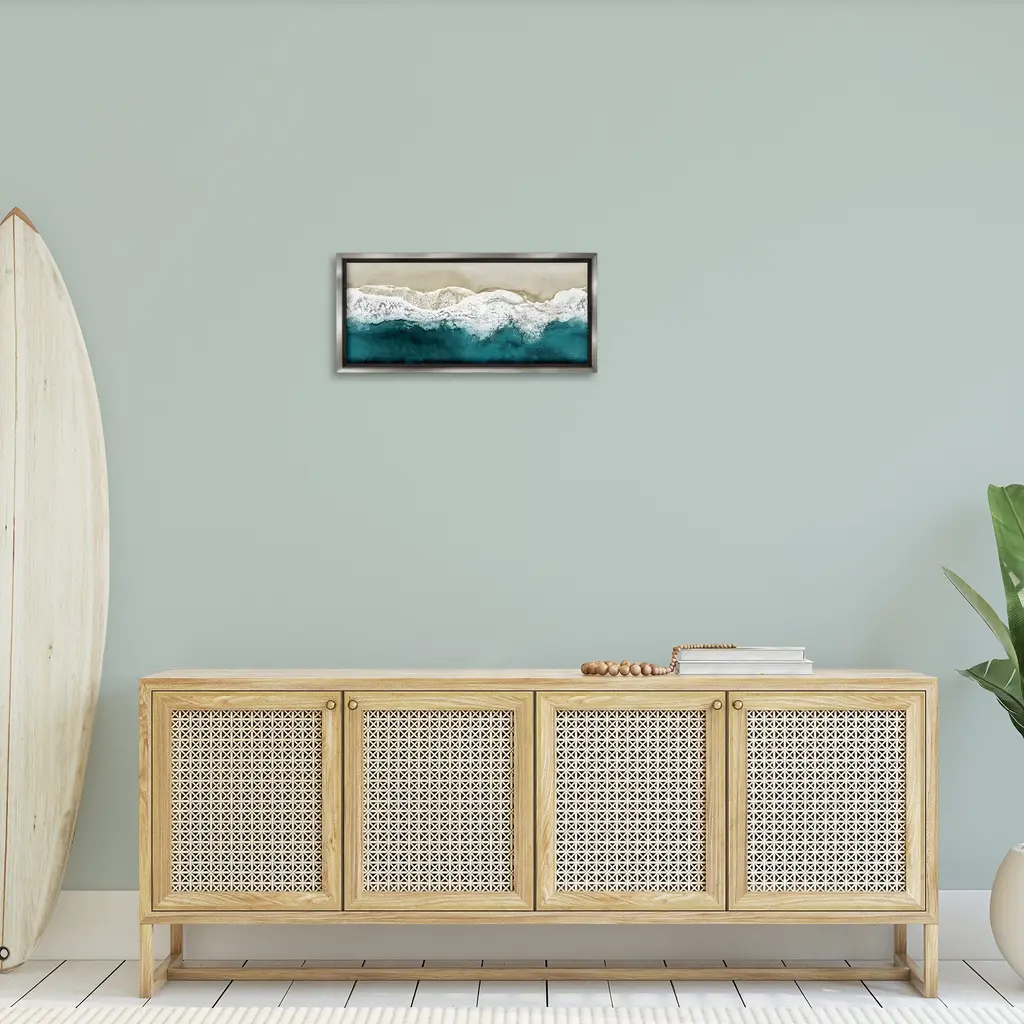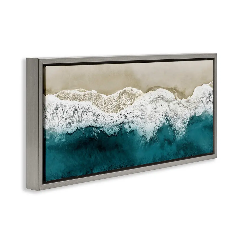 Elevate your home or office to the next level with Stupell Framed Floating Canvas Wall Art. Our premium hand-stretched canvas is mounted securely into a sturdy lightweight frame. The museum-style gap between the wrapped canvas and the box frame gives the illusion of floating artwork. Stupell Wall Art is made in the USA.Features: Dimensions: 25 x 1.7 x 11 Frame, 24 x 1.5 x 10 Canvas ArtFloating Frame Canvas Products are available in sizes 25"x11" and 31"x14". All Floating Frame Canvas Products have a 1.7" Depth.Wall Art is Ready to Hang with Hardware Free Hanging. No Installation required. For Easy Set Up Lean or Layer Artwork on Shelf or Against Wall. Artwork is Permently Fixed into the Frame.Our elevated 1.7" Thick Floating Frame is the perfect complement to our canvas style Wall Art. We use only the highest quality inks in house with industry leading printing solutions. Canvas is hand stretched over a durable wood foundation and then mounted securly into a Modern Box Frame. Made in the USA.Artwork Relates To: Sea, Ocean, Water, Sea Waves, Reef, Beach, Coast, ShoreDesign by Maggie Olsen