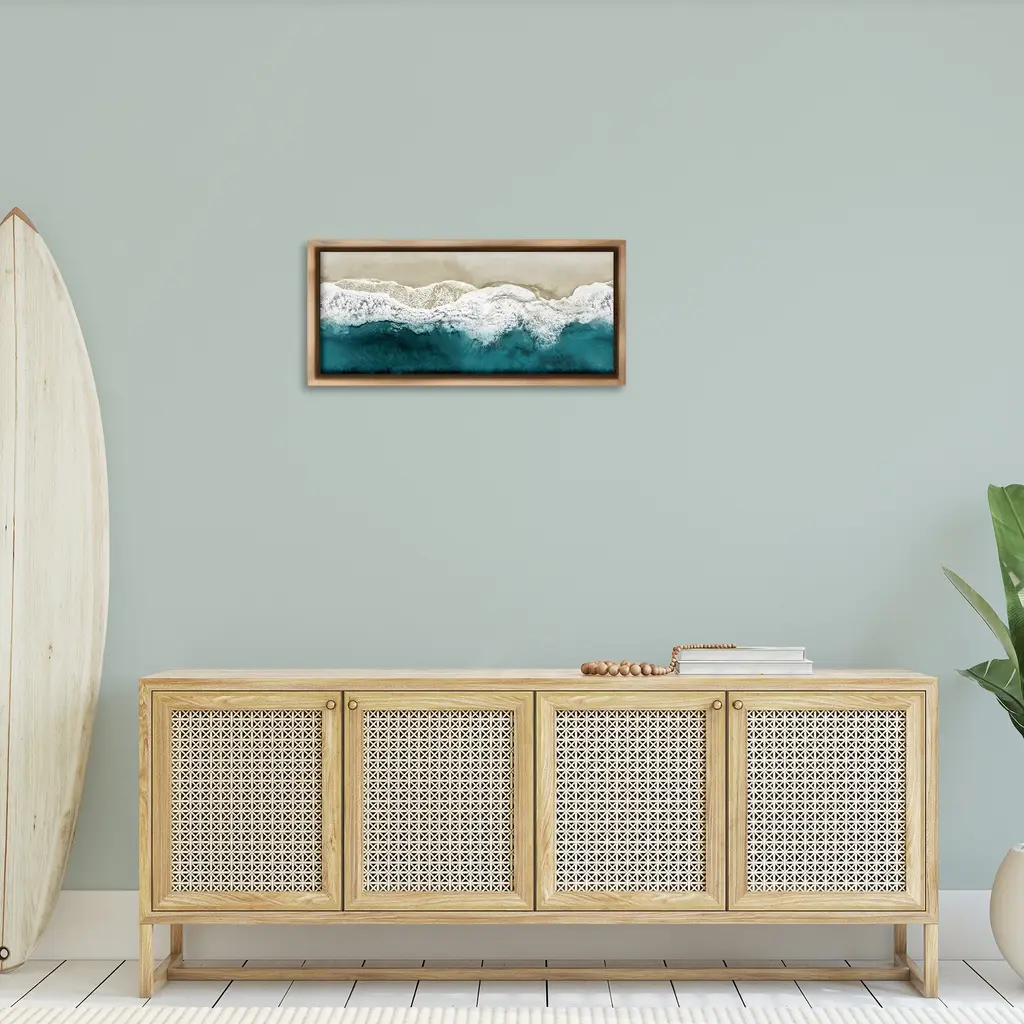 Elevate your home or office to the next level with Stupell Framed Floating Canvas Wall Art. Our premium hand-stretched canvas is mounted securely into a sturdy lightweight frame. The museum-style gap between the wrapped canvas and the box frame gives the illusion of floating artwork. Stupell Wall Art is made in the USA.Features: Dimensions: 25 x 1.7 x 11 Frame, 24 x 1.5 x 10 Canvas ArtFloating Frame Canvas Products are available in sizes 25"x11" and 31"x14". All Floating Frame Canvas Products have a 1.7" Depth.Wall Art is Ready to Hang with Hardware Free Hanging. No Installation required. For Easy Set Up Lean or Layer Artwork on Shelf or Against Wall. Artwork is Permently Fixed into the Frame.Our elevated 1.7" Thick Floating Frame is the perfect complement to our canvas style Wall Art. We use only the highest quality inks in house with industry leading printing solutions. Canvas is hand stretched over a durable wood foundation and then mounted securly into a Modern Box Frame. Made in the USA.Artwork Relates To: Sea, Ocean, Water, Sea Waves, Reef, Beach, Coast, ShoreDesign by Maggie Olsen