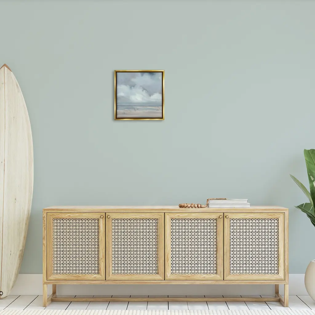 Elevate your home or office to the next level with Stupell Framed Floating Canvas Wall Art. Our premium hand-stretched canvas is mounted securely into a sturdy lightweight frame. The museum-style gap between the wrapped canvas and the box frame gives the illusion of floating artwork. Stupell Wall Art is made in the USA.Features: Dimensions: 18 x 1.7 x 18 Frame, 17 x 1.5 x 17 Canvas ArtFloating Frame Canvas Products are available in sizes 18"x18" and 25"x25". All Floating Frame Canvas Products have a 1.7" Depth.Wall Art is Ready to Hang with Hardware Free Hanging. No Installation required. For Easy Set Up Lean or Layer Artwork on Shelf or Against Wall. Artwork is Permently Fixed into the Frame.Our elevated 1.7" Thick Floating Frame is the perfect complement to our canvas style Wall Art. We use only the highest quality inks in house with industry leading printing solutions. Canvas is hand stretched over a durable wood foundation and then mounted securly into a Modern Box Frame. Made in the USA.Artwork Relates To: Sky, Painting, Scenery, Person, Horizon, Cloud, Sea, Water, Weather, FogDesign by Liz Jardine