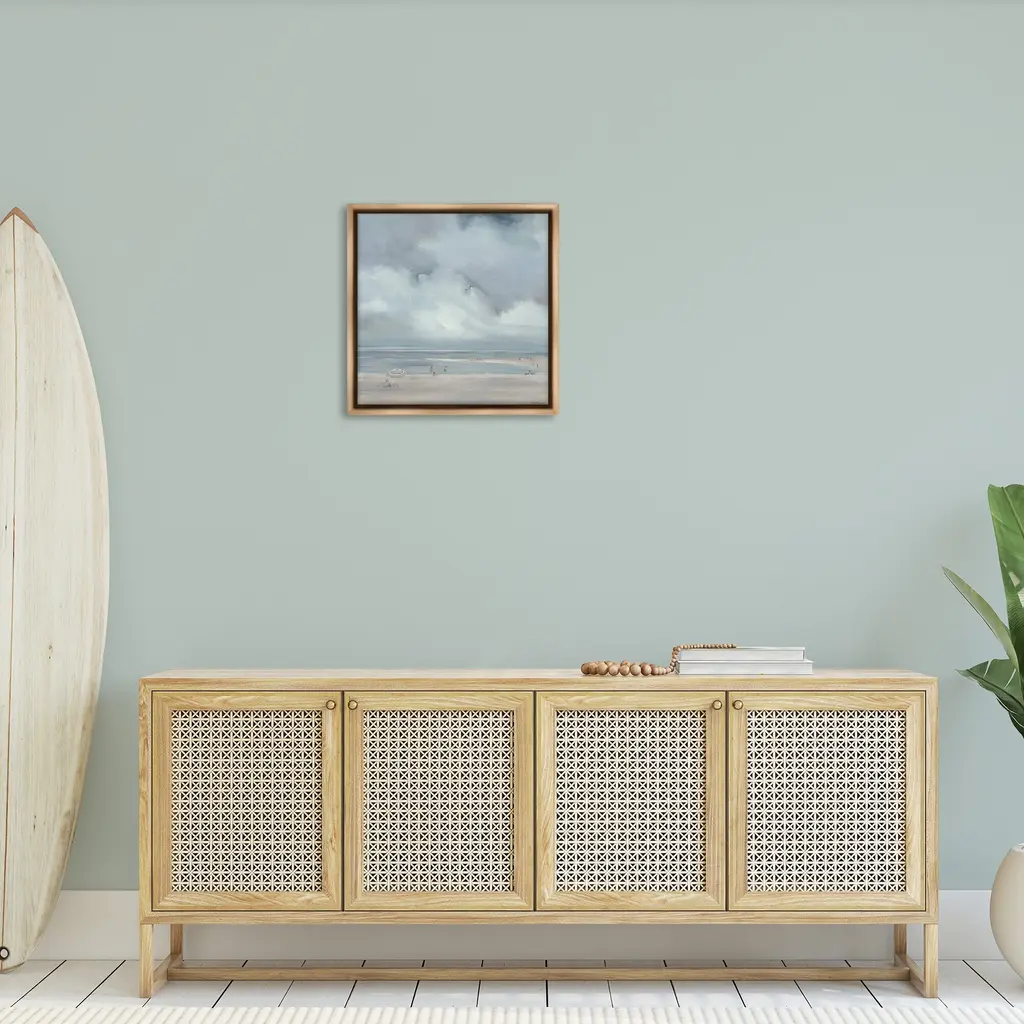 Elevate your home or office to the next level with Stupell Framed Floating Canvas Wall Art. Our premium hand-stretched canvas is mounted securely into a sturdy lightweight frame. The museum-style gap between the wrapped canvas and the box frame gives the illusion of floating artwork. Stupell Wall Art is made in the USA.Features: Dimensions: 18 x 1.7 x 18 Frame, 17 x 1.5 x 17 Canvas ArtFloating Frame Canvas Products are available in sizes 18"x18" and 25"x25". All Floating Frame Canvas Products have a 1.7" Depth.Wall Art is Ready to Hang with Hardware Free Hanging. No Installation required. For Easy Set Up Lean or Layer Artwork on Shelf or Against Wall. Artwork is Permently Fixed into the Frame.Our elevated 1.7" Thick Floating Frame is the perfect complement to our canvas style Wall Art. We use only the highest quality inks in house with industry leading printing solutions. Canvas is hand stretched over a durable wood foundation and then mounted securly into a Modern Box Frame. Made in the USA.Artwork Relates To: Sky, Painting, Scenery, Person, Horizon, Cloud, Sea, Water, Weather, FogDesign by Liz Jardine