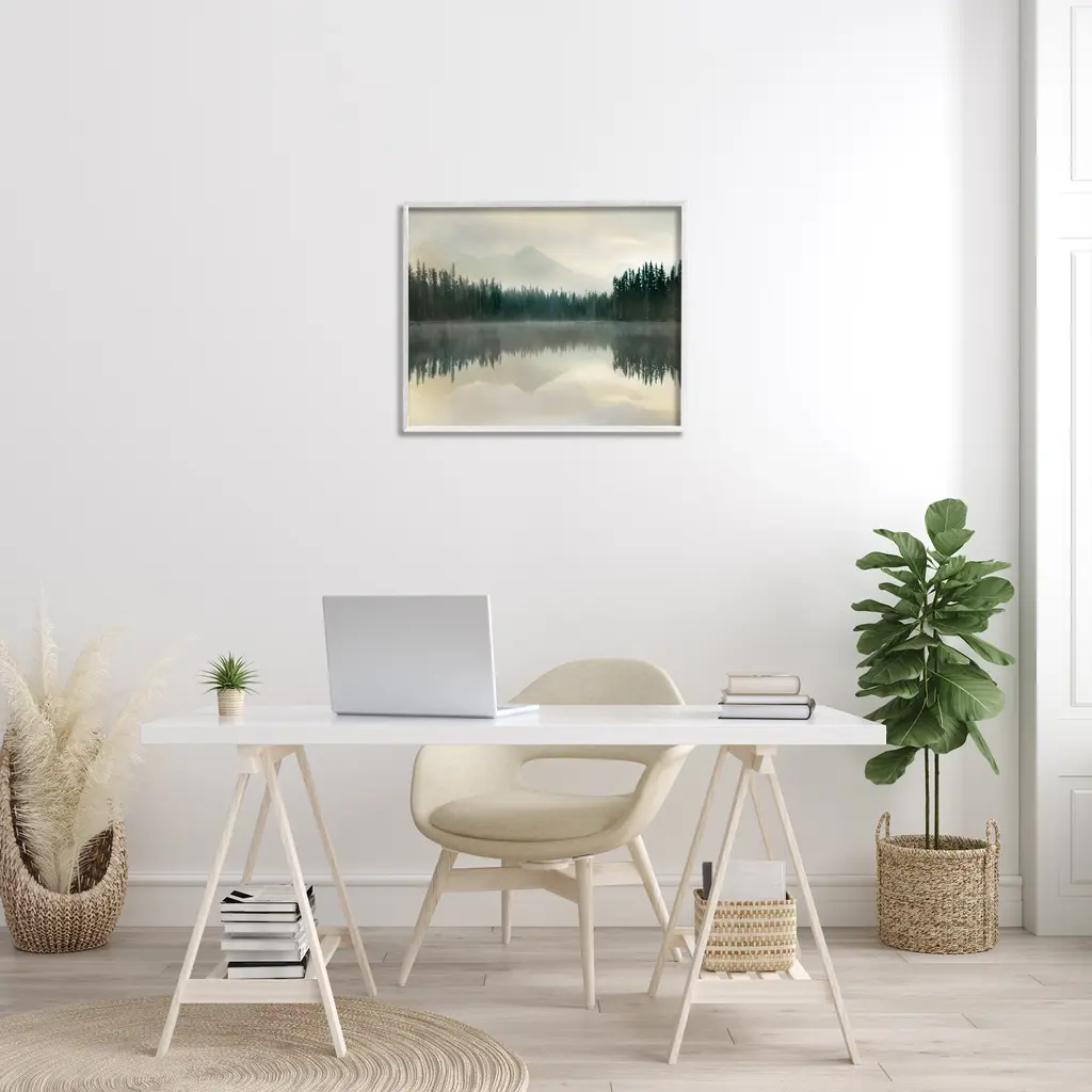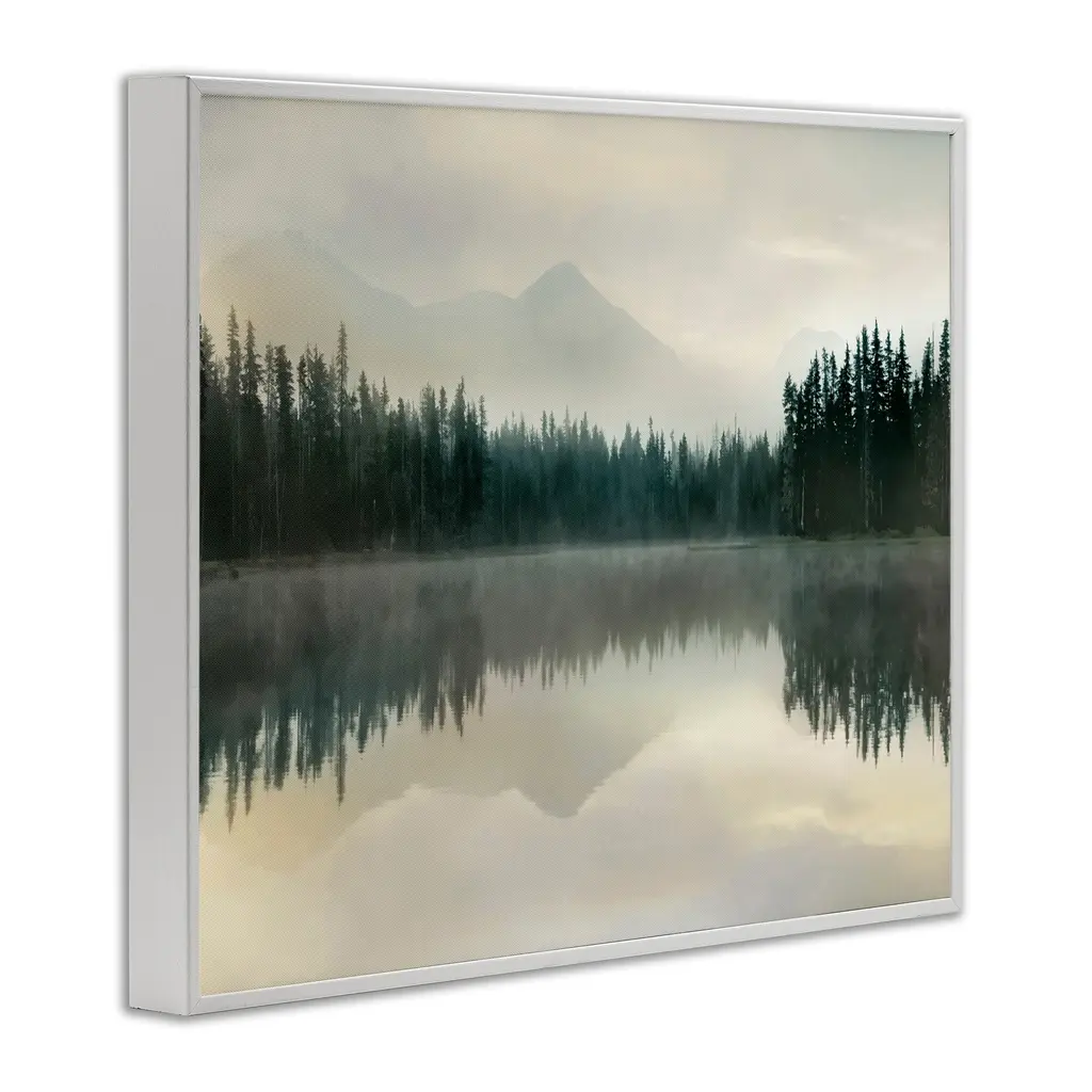 Stupell Foggy Lake Forest Landscape Soft Nature Water Reflection Framed Wall Art - 30 X 24 - White