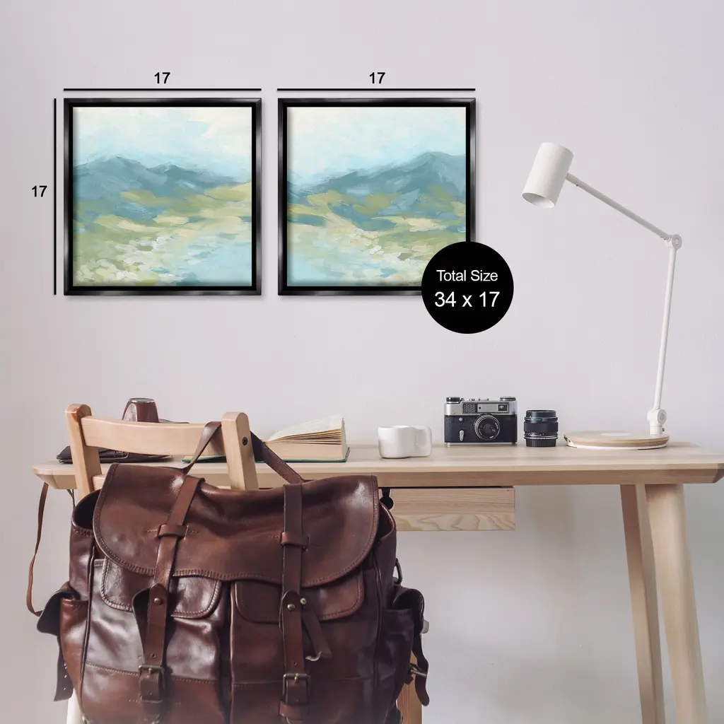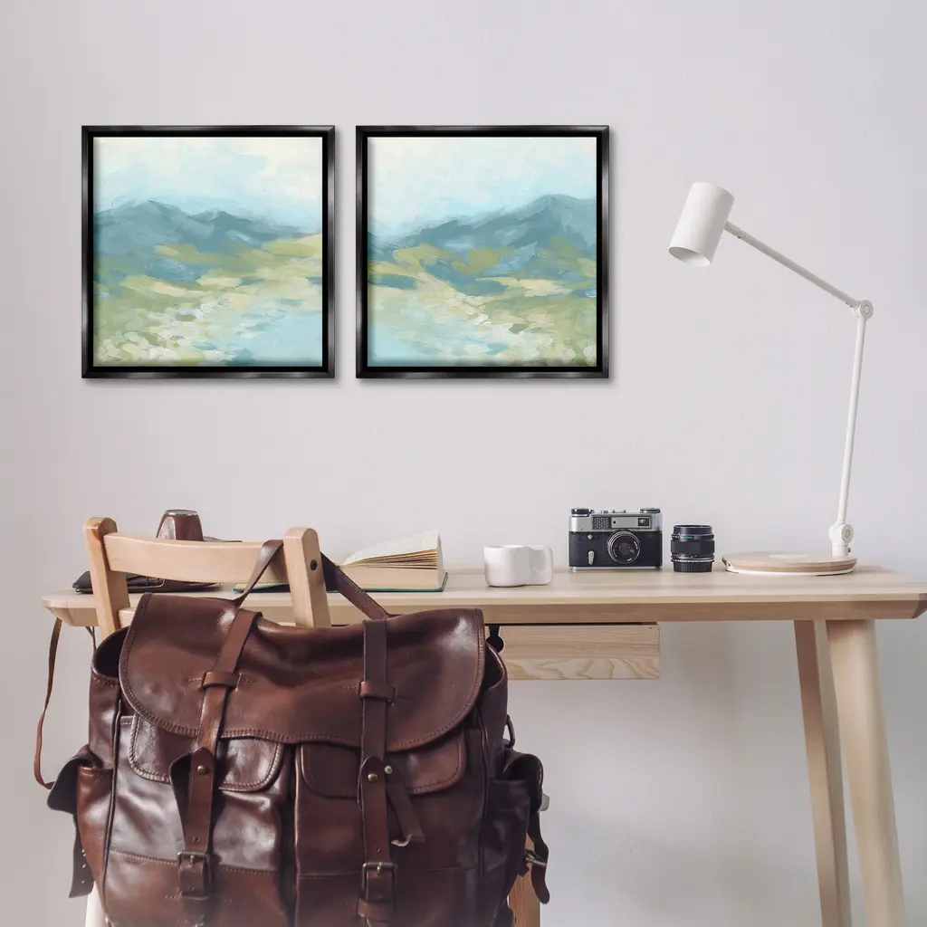 Elevate your home or office to the next level with Stupell Framed Floating Canvas Wall Art. Our premium hand-stretched canvas is mounted securely into a sturdy lightweight frame. The museum-style gap between the wrapped canvas and the box frame gives the illusion of floating artwork. Stupell Wall Art is made in the USA.Features: Dimensions: 2 Piece Set, Each Frame is 18 x 1.7 x 18Two Piece Floating Frame Canvas Products are available as 18"x18" or 25"x25" Panels. All Floating Frame Canvas Products have a 1.7" Depth.Wall Art is Ready to Hang with Hardware Free Hanging. No Installation required. For Easy Set Up Lean or Layer Artwork on Shelf or Against Wall. Artwork is Permently Fixed into the Frame.Our elevated 1.7" Thick Floating Frame is the perfect complement to our canvas style Wall Art. We use only the highest quality inks in house with industry leading printing solutions. Canvas is hand stretched over a durable wood foundation and then mounted securly into a Modern Box Frame. Made in the USA.Artwork Relates To: Field, Grassland, Nature, Modern, Meadow, Countryside, Abstract, Landscape, Mountain, Valley, Lake, PondDesign by June Erica Vess
