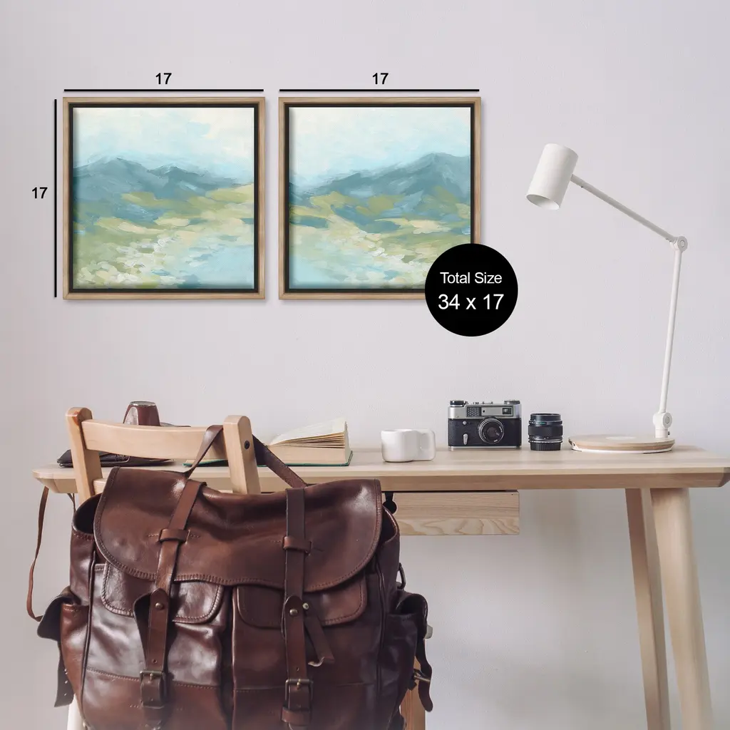 Elevate your home or office to the next level with Stupell Framed Floating Canvas Wall Art. Our premium hand-stretched canvas is mounted securely into a sturdy lightweight frame. The museum-style gap between the wrapped canvas and the box frame gives the illusion of floating artwork. Stupell Wall Art is made in the USA.Features: Dimensions: 2 Piece Set, Each Frame is 18 x 1.7 x 18Two Piece Floating Frame Canvas Products are available as 18"x18" or 25"x25" Panels. All Floating Frame Canvas Products have a 1.7" Depth.Wall Art is Ready to Hang with Hardware Free Hanging. No Installation required. For Easy Set Up Lean or Layer Artwork on Shelf or Against Wall. Artwork is Permently Fixed into the Frame.Our elevated 1.7" Thick Floating Frame is the perfect complement to our canvas style Wall Art. We use only the highest quality inks in house with industry leading printing solutions. Canvas is hand stretched over a durable wood foundation and then mounted securly into a Modern Box Frame. Made in the USA.Artwork Relates To: Field, Grassland, Nature, Modern, Meadow, Countryside, Abstract, Landscape, Mountain, Valley, Lake, PondDesign by June Erica Vess