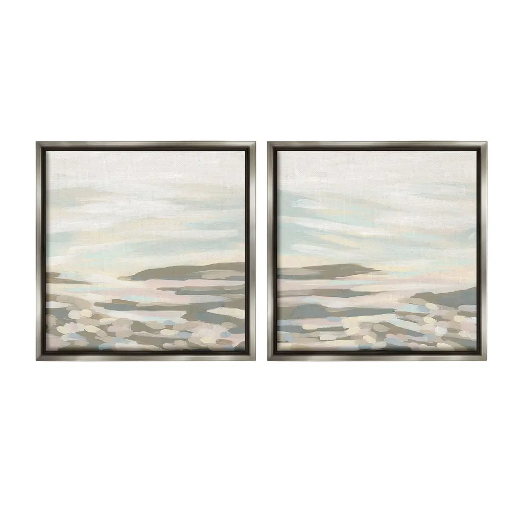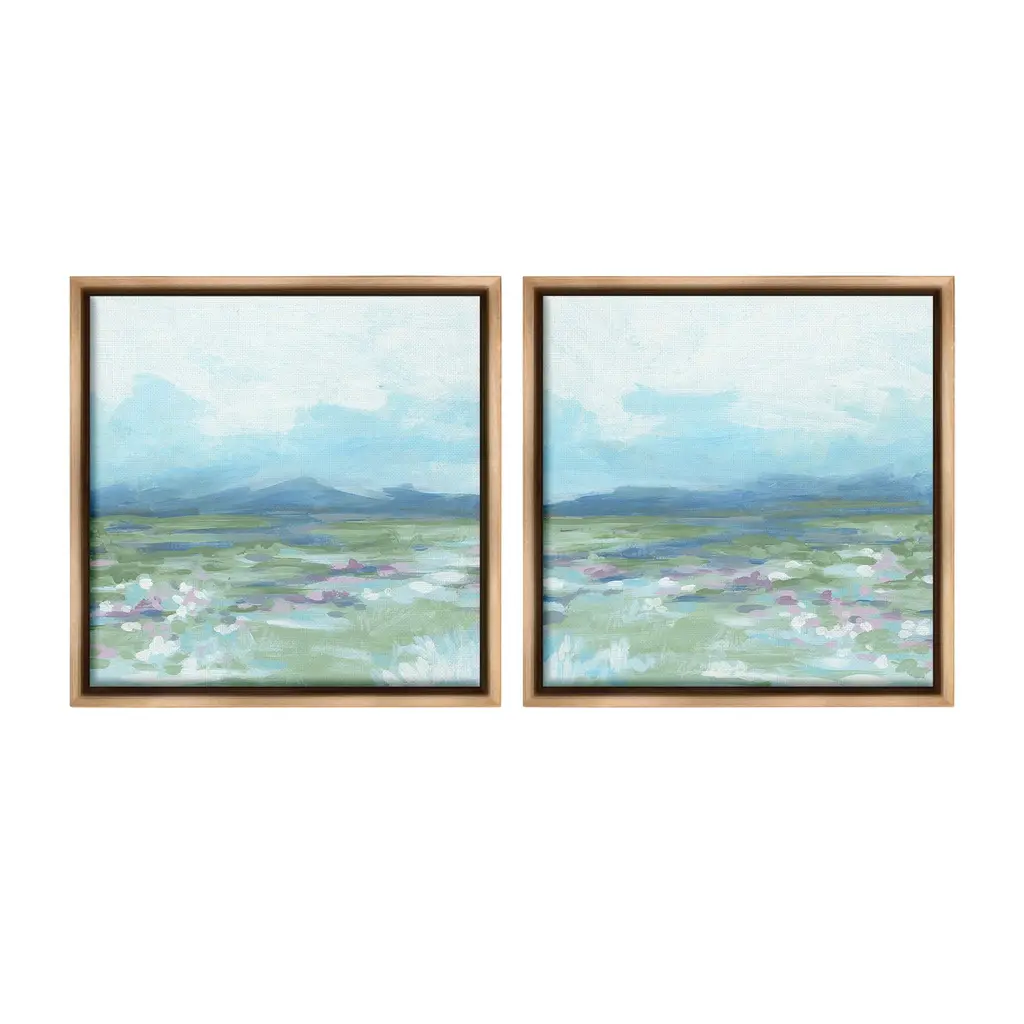 Elevate your home or office to the next level with Stupell Framed Floating Canvas Wall Art. Our premium hand-stretched canvas is mounted securely into a sturdy lightweight frame. The museum-style gap between the wrapped canvas and the box frame gives the illusion of floating artwork. Stupell Wall Art is made in the USA.Features: Dimensions: 2 Piece Set, Each Frame is 18 x 1.7 x 18Two Piece Floating Frame Canvas Products are available as 18"x18" or 25"x25" Panels. All Floating Frame Canvas Products have a 1.7" Depth.Wall Art is Ready to Hang with Hardware Free Hanging. No Installation required. For Easy Set Up Lean or Layer Artwork on Shelf or Against Wall. Artwork is Permently Fixed into the Frame.Our elevated 1.7" Thick Floating Frame is the perfect complement to our canvas style Wall Art. We use only the highest quality inks in house with industry leading printing solutions. Canvas is hand stretched over a durable wood foundation and then mounted securly into a Modern Box Frame. Made in the USA.Artwork Relates To: Field, Grassland, Nature, Modern, Meadow, Countryside, Abstract, Landscape, Mountain, Valley, Lake, PondDesign by June Erica Vess
