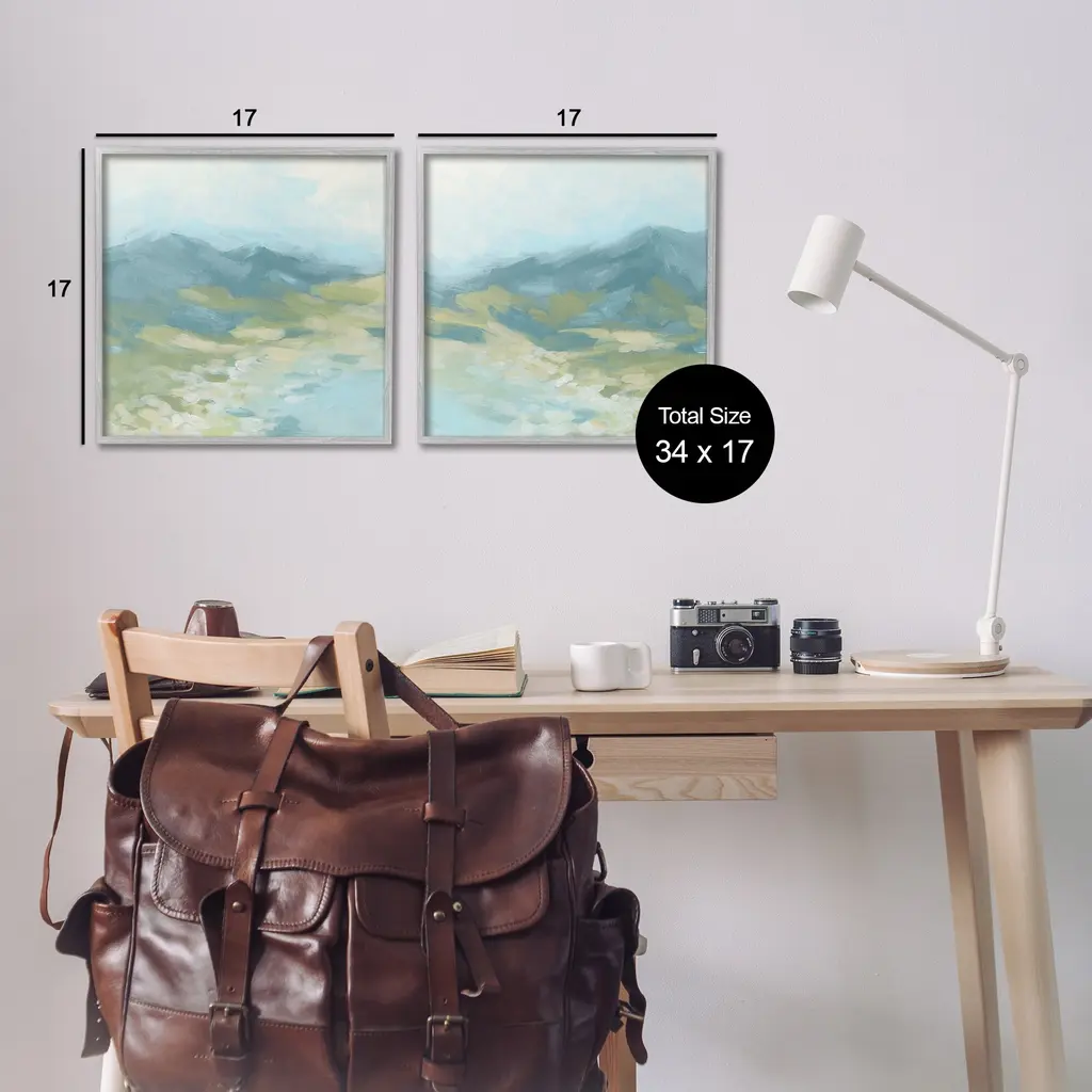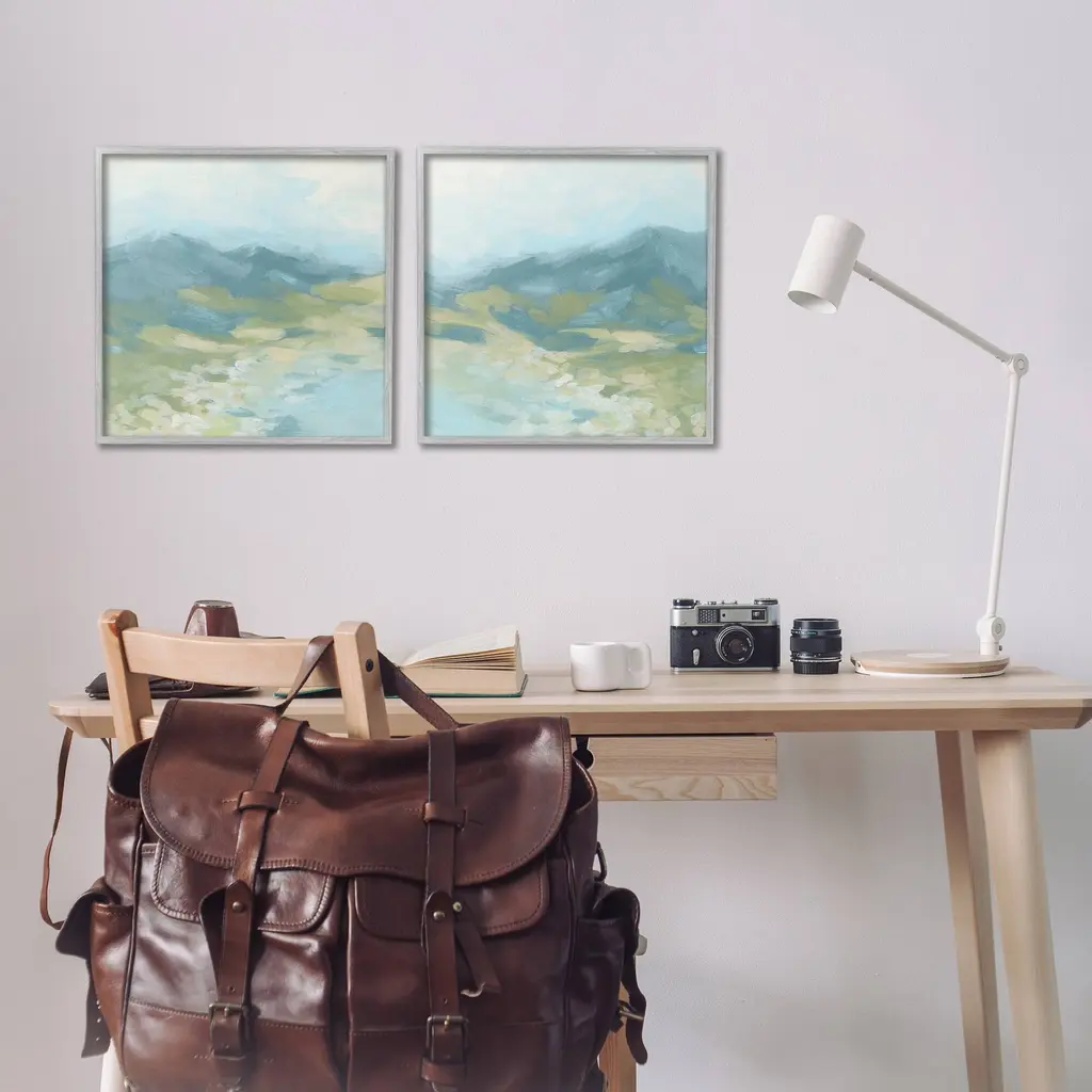 Fill any space in your home or office with our Framed Wall Art Sets. Our framed artwork is securely mounted into a 1.5-inch thick wood grain frame and ready to hang. Frames are available in three alluring styles: black, gray farmhouse and white. Stupell Wall Art is made in the USA.Features: Dimensions: 2 Piece Set, Each Panel is 12 x 1.5 x 12 FramedTwo Piece Framed Giclee Sets are available as 12"x12", 17"x17" or 24"x24" Panels. All Framed giclee Products have a 1.5" Depth.Wall Art is Ready to Hang with Hardware Free Hanging. No installation required. For Easy Set Up Lean or Layer Artwork on Shelf or Against Wall.Curated Wall Art Sets make it easy for you complete the theme for any room. Our giclée prints are carefully mounted on a durable MDF backing, and then perfectly finished in a 1.5 inch thick woodgrain frame. Mounted frame colors include black, gray farmhouse and white. Made In USA.Artwork Relates To: Field, Grassland, Nature, Modern, Meadow, Countryside, Abstract, Landscape, Mountain, Valley, Lake, PondDesign by June Erica Vess