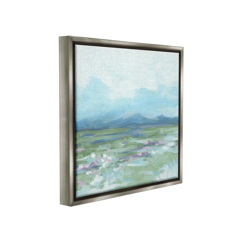 Elevate your home or office to the next level with Stupell Framed Floating Canvas Wall Art. Our premium hand-stretched canvas is mounted securely into a sturdy lightweight frame. The museum-style gap between the wrapped canvas and the box frame gives the illusion of floating artwork. Stupell Wall Art is made in the USA.Features: Dimensions: 18 x 1.7 x 18 Frame, 17 x 1.5 x 17 Canvas ArtFloating Frame Canvas Products are available in sizes 18"x18" and 25"x25". All Floating Frame Canvas Products have a 1.7" Depth.Wall Art is Ready to Hang with Hardware Free Hanging. No Installation required. For Easy Set Up Lean or Layer Artwork on Shelf or Against Wall. Artwork is Permently Fixed into the Frame.Our elevated 1.7" Thick Floating Frame is the perfect complement to our canvas style Wall Art. We use only the highest quality inks in house with industry leading printing solutions. Canvas is hand stretched over a durable wood foundation and then mounted securly into a Modern Box Frame. Made in the USA.Artwork Relates To: Nature, Meadow, Landscape, Country, Sky, Field, MountainDesign by June Erica Vess