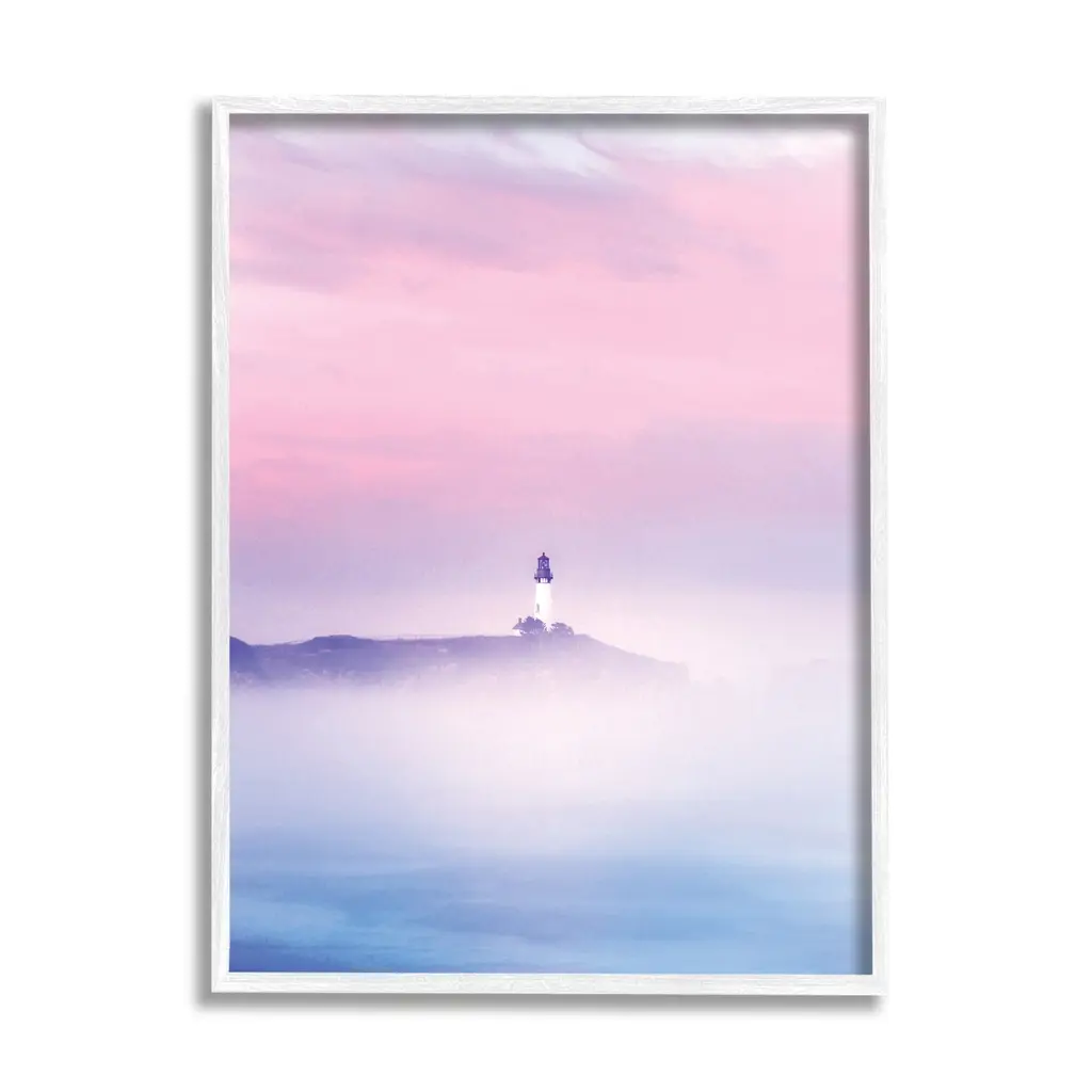Stupell Foggy Pink & Purple Lighthouse Sky Framed Giclee Art By Dennis Frates - 16 X 20 - Black