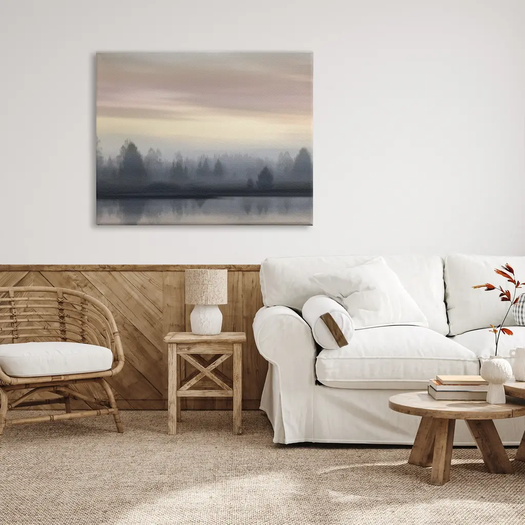 We create our stretched canvas to the highest standards. Using only the highest quality inks and canvas on Mimaki printers, we hand-cut and stretch each piece over a 1.5-inch thick wooden frame for hanging. As a result, the art comes ready to hang on the sturdy ledge with no installation required. Stupell Wall Art is made in the USA.Features: Dimensions: 20 x 1.5 x 16 InchesStretched Canvas Sizes Include Standard: 20 x 1.5 x 16 Large: 30 x 1.5 x 20 X-Large: 40 x 1.5 x 30 Oversized: 48 x 1.5 x 36Wall Art is Ready to Hang with Hardware Free Hanging. No installation required. For Easy Set Up Lean or Layer Artwork on Shelf or Against Wall.Our stretched canvas is created with the highest standards. We use only the highest quality inks and canvas on our in house Mimaki printers, and then hand cut and stretch each piece over a 1.5 inch thick wooden frame for hanging. Made In USA.Artwork Relates To: Nature, Weather, Fog, Mist, Scenery, Landscape, Sky, Water, LakeDesign by Madeline Clark