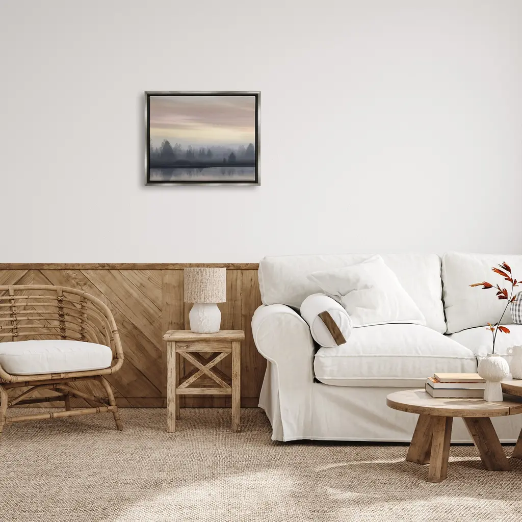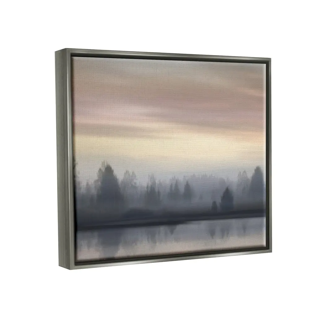 Elevate your home or office to the next level with Stupell Framed Floating Canvas Wall Art. Our premium hand-stretched canvas is mounted securely into a sturdy lightweight frame. The museum-style gap between the wrapped canvas and the box frame gives the illusion of floating artwork. Stupell Wall Art is made in the USA.Features: Dimensions: 21 x 1.7 x 17 Frame, 20 x 1.5 x 16 Canvas ArtFloating Frame Sizes Include Standard: 21 x 1.7 x 17 Oversized: 31 x 1.7 x 25Wall Art is Ready to Hang with Hardware Free Hanging. No installation required. For Easy Set Up Lean or Layer Artwork on Shelf or Against Wall.Our elevated 1.7" Thick Floating Frame is the perfect complement to our canvas style Wall Art. We use only the highest quality inks in house with industry leading printing solutions. Canvas is hand stretched over a durable wood foundation and then mounted securly into a Modern Box Frame. Made in the USA.Artwork Relates To: Nature, Weather, Fog, Mist, Scenery, Landscape, Sky, Water, LakeDesign by Madeline Clark