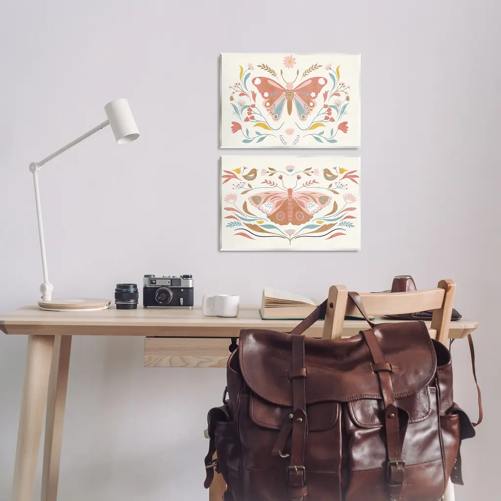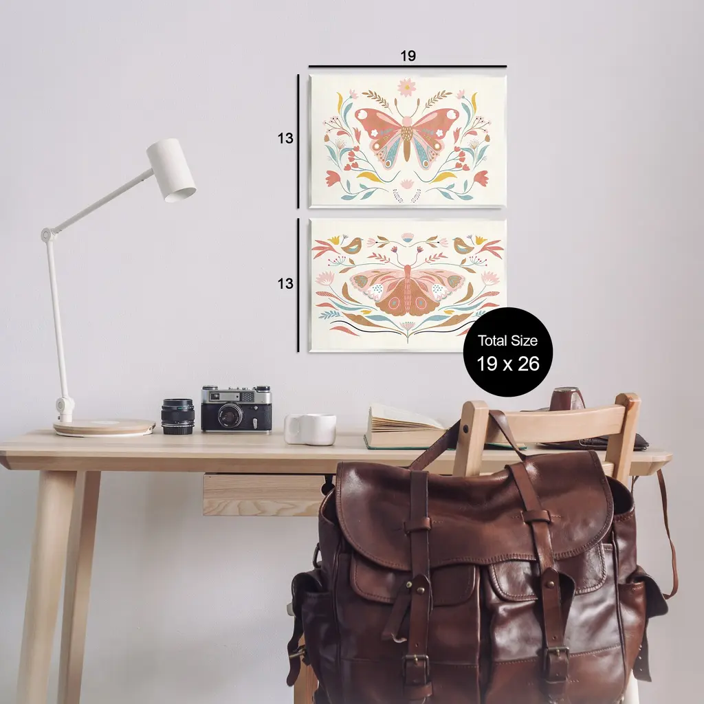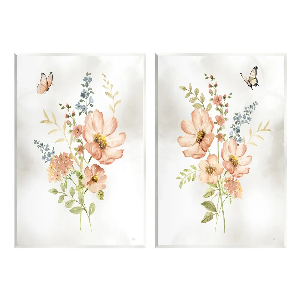 Fill any space with Stupell Wall Art Sets. Our wall plaques start as high-quality lithograph prints mounted on durable 0.5-inch thick MDF wood. Each piece is hand finished and comes with a fresh layer of white foil on the sides to give it a crisp, clean look. Plaques arrive ready to hang without installation and come with removable plastic corners to keep them from damage in transit. Stupell Wall Art is made in the USA.Features: Dimensions: 2 Piece Set, Each Panel is 15 x 0.5 x 10 InchesTwo Piece Wall Plaque Sets are available as 15"x10" or 19"x13" Panels. All Wall Art Plaques have a 0.5" Depth.Wall Art is Ready to Hang with Hardware Free Hanging. No installation required. For Easy Set Up Lean or Layer Artwork on Shelf or Against Wall.All of our wall plaques start off as high quality lithograph prints that are then mounted on durable 0.5 inch thick MDF wood. Each piece is hand finished and comes with a fresh layer of foil on the sides to give it a crisp clean look. Made In USA.Artwork Relates To: Insect, Butterfly, Flower, Floral, BotanicalDesign by Kim Allen