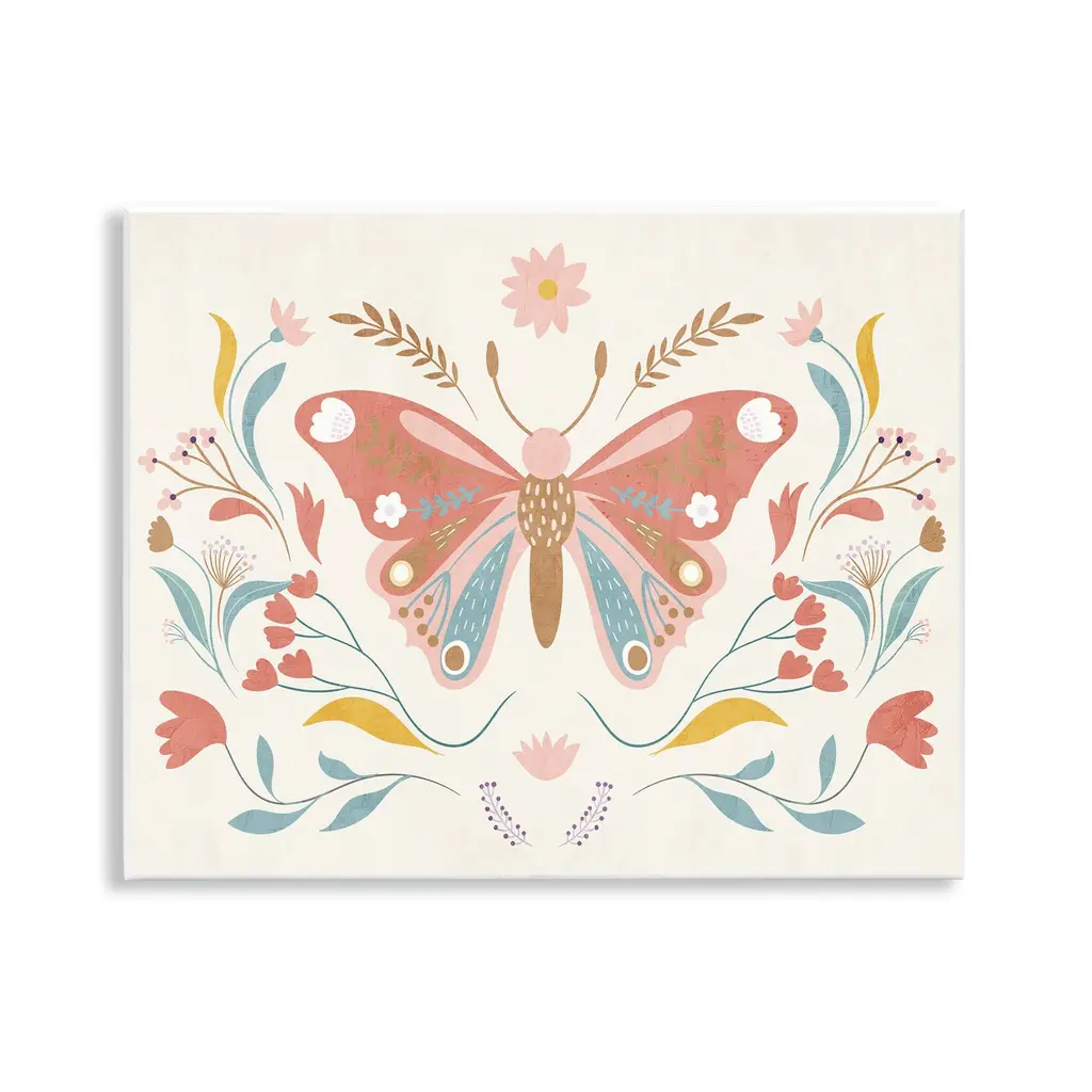 Stupell Folk Butterflies & Florals Wall Plaque Art Design By Kim Allen (Set Of 2) - 19 X 13