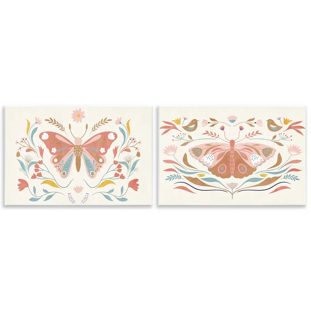 Stupell Folk Florals Butterflies Wall Plaque Art Design By Kim Allen (Set Of 2) - 14 X 11