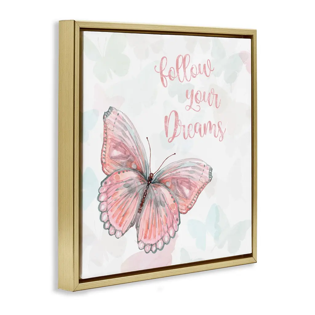 Stupell Follow Your Dreams Pink Butterfly Framed Floater Canvas Wall Art Design By Carol Robinson - 18 X 18 - Gold
