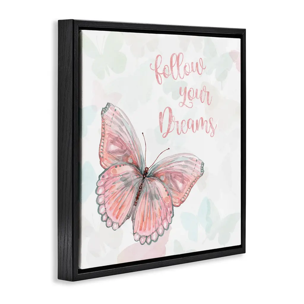 Stupell Follow Your Dreams Pink Butterfly Framed Floater Canvas Wall Art Design By Carol Robinson - 25 X 25 - Black