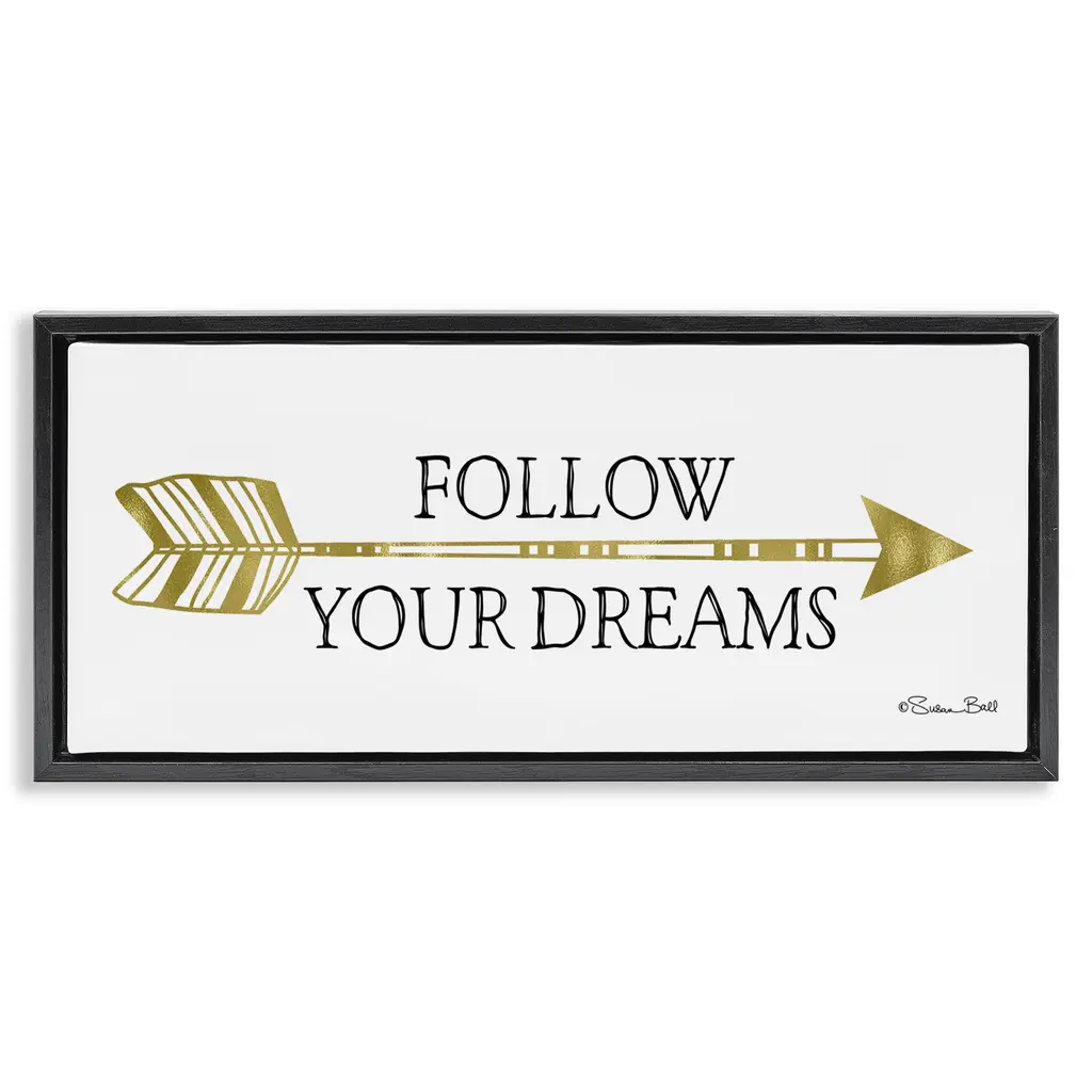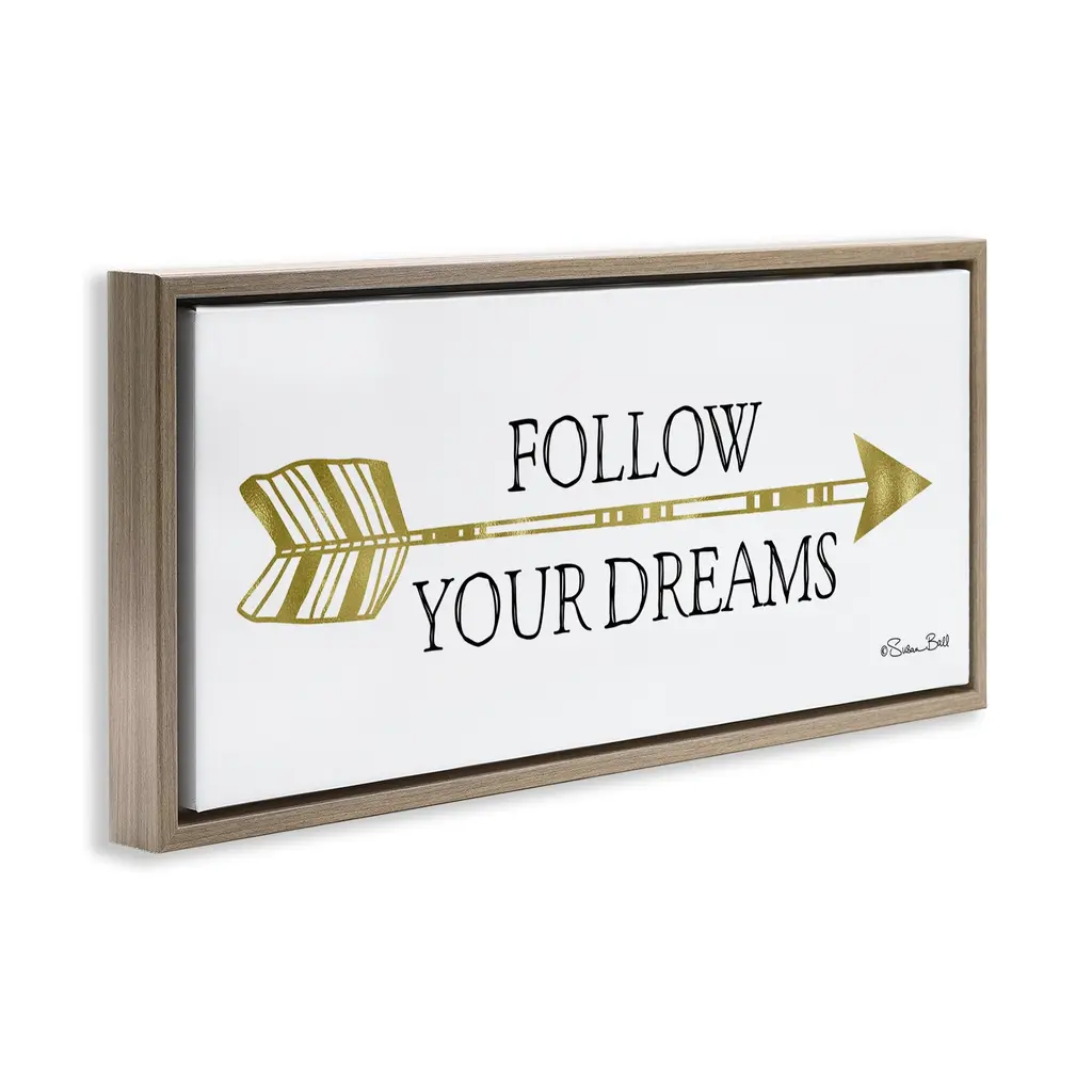 Stupell Follow Your Dreams With Arrow Framed Floater Canvas Wall Art Design By Susan Ball - 25 X 11 - Brown
