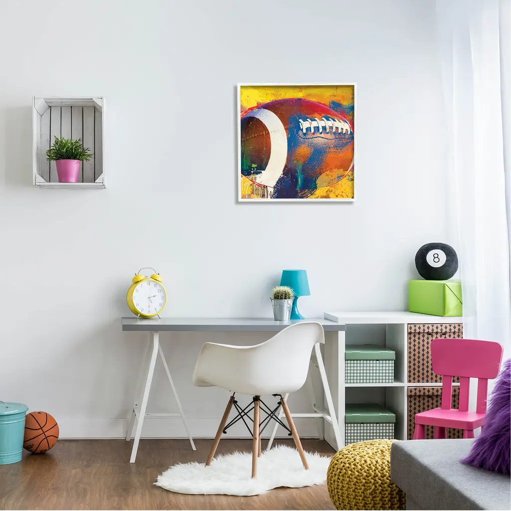 Our Framed Giclee Wall Art adds a touch of class to any space in your home or office. Frames are available in three alluring styles: black, gray farmhouse and white. Our textured artwork will add more depth and dimension to any space. Each piece is mounted with a 1.5 inch thick wood grain frame that is ready to hang! Looking for a statement piece? We have oversized artwork available.Features:Dimensions: 12 x 1.5 x 12 FramedFramed Giclee Sizes IncludeStandard: 12 x 1.5 x 12Large: 17 x 1.5 x 17Oversized: 24 x 1.5 x 24Wall Art is Ready to Hang - No Installation or Hardware Needed. For Easy Set Up Lean or Layer Artwork on Shelf or Against Wall.Our giclee prints are carefully mounted on a durable MDF backing, and then perfectly finished in a 1.5 inch thick woodgrain frame. Mounted frame colors include black, gray farmhouse and white. Made In USA.Artwork Relates To: Sphere; Modern, Sports, Football, Sports Ball, Abstract, UrbanDesign by Savannah Miller