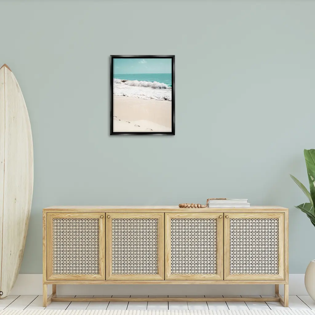 Stupell Footprints On Beach Shore Framed Floater Canvas Wall Art Design By Bill Carson Photography - 25 X 31 - Black