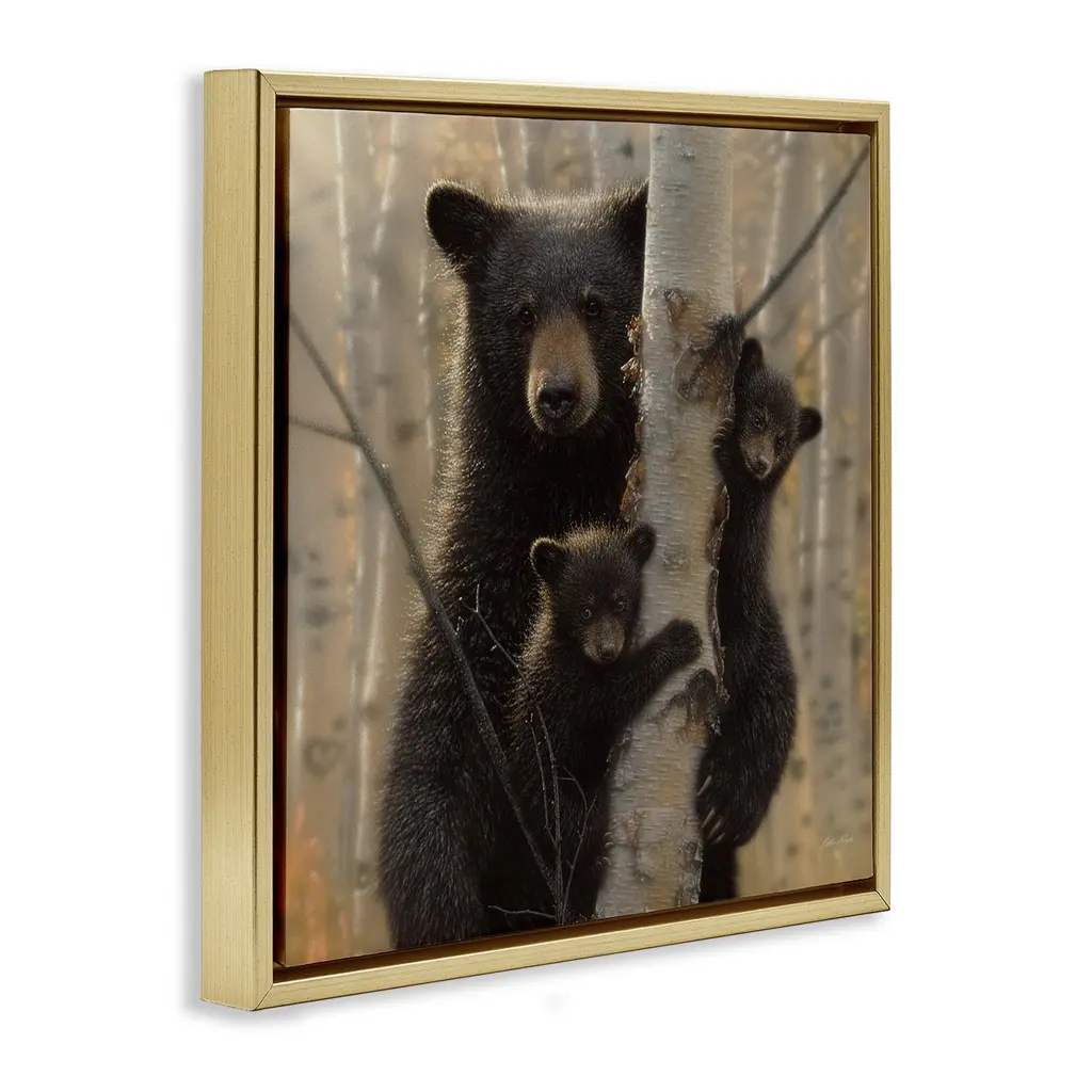 Stupell Forest Black Bear And Cubs Framed Floater Canvas Wall Art Design By Collin Bogle - 25 X 25 - Gold