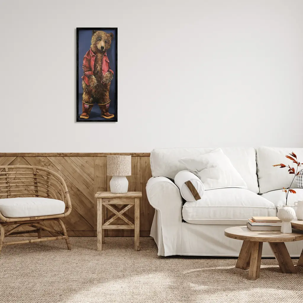 Stupell Forest Brown Bear Rainboots Flannel Shirt Rustic Animal Framed Wall Art - 13 X 30 - Black
