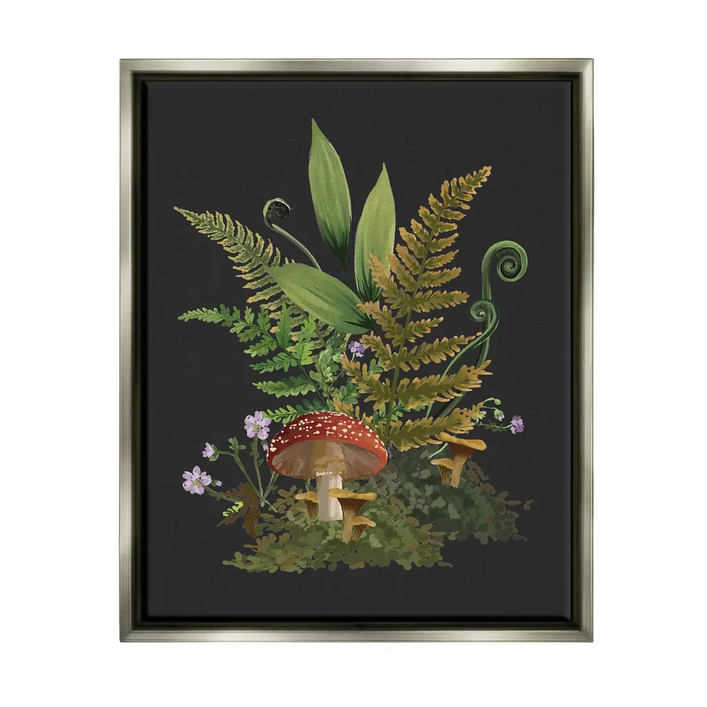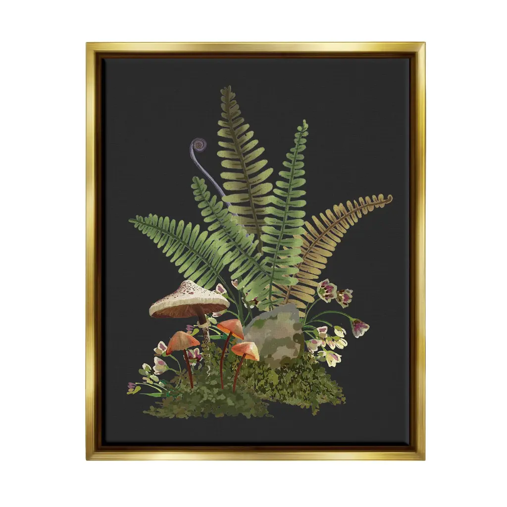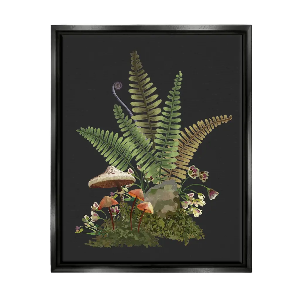 Elevate your home or office to the next level with Stupell Framed Floating Canvas Wall Art. Our premium hand stretched canvas is mounted securly into a sturdy lightweight frame. The museum style gap between wrapped canvas and box frame gives the illusion of floating artwork. Features: Dimensions: 17 x 1.7 x 21 Frame, 16 x 1.5 x 20 Canvas ArtFloating Frame Sizes Include Standard: 17 x 1.7 x 21 Oversized: 25 x 1.7 x 31Wall Art is Ready to Hang - No Installation or Hardware Needed. For Easy Set Up Lean or Layer Artwork on Shelf or Against Wall.Our elevated 1.7" Thick Floating Frame is the perfect complement to our canvas style Wall Art. We use only the highest quality inks in house with industry leading printing solutions. Canvas is hand stretched over a durable wood foundation and then mounted securly into a Modern Box Frame. Made in the USA.Artwork Relates To: Plant, Fern, Flower, Fungus, Leaf, Floral, Herb, Forest, Woodland, MushroomDesign by House of Rose