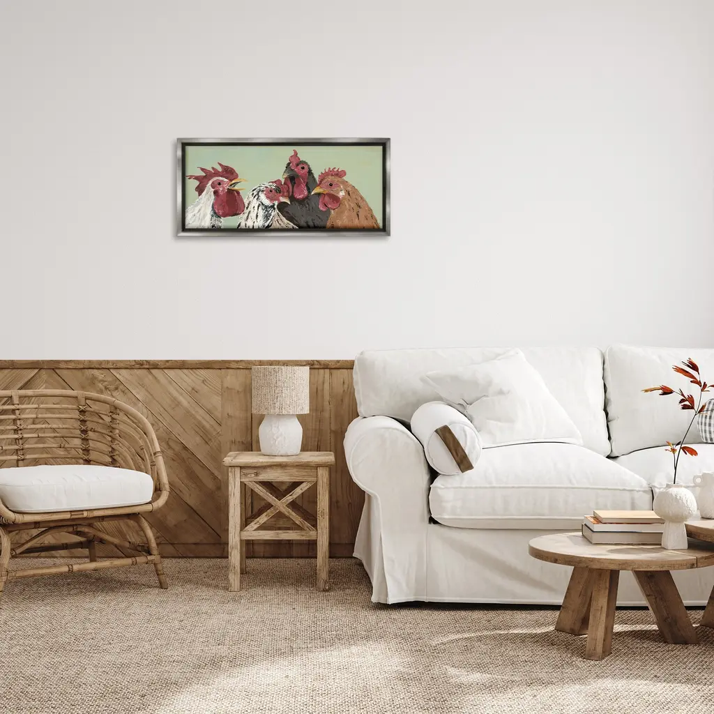 Elevate your home or office to the next level with Stupell Framed Floating Canvas Wall Art. Our premium hand-stretched canvas is mounted securely into a sturdy lightweight frame. The museum-style gap between the wrapped canvas and the box frame gives the illusion of floating artwork. Stupell Wall Art is made in the USA.Features: Dimensions: 25 x 1.7 x 11 Frame, 24 x 1.5 x 10 Canvas ArtFloating Frame Canvas Products are available in sizes 25"x11" and 31"x14". All Floating Frame Canvas Products have a 1.7" Depth.Wall Art is Ready to Hang with Hardware Free Hanging. No Installation required. For Easy Set Up Lean or Layer Artwork on Shelf or Against Wall. Artwork is Permently Fixed into the Frame.Our elevated 1.7" Thick Floating Frame is the perfect complement to our canvas style Wall Art. We use only the highest quality inks in house with industry leading printing solutions. Canvas is hand stretched over a durable wood foundation and then mounted securly into a Modern Box Frame. Made in the USA.Artwork Relates To: Country, Animal, Farmhouse, Rooster, Chicken, HenDesign by Jade Reynolds