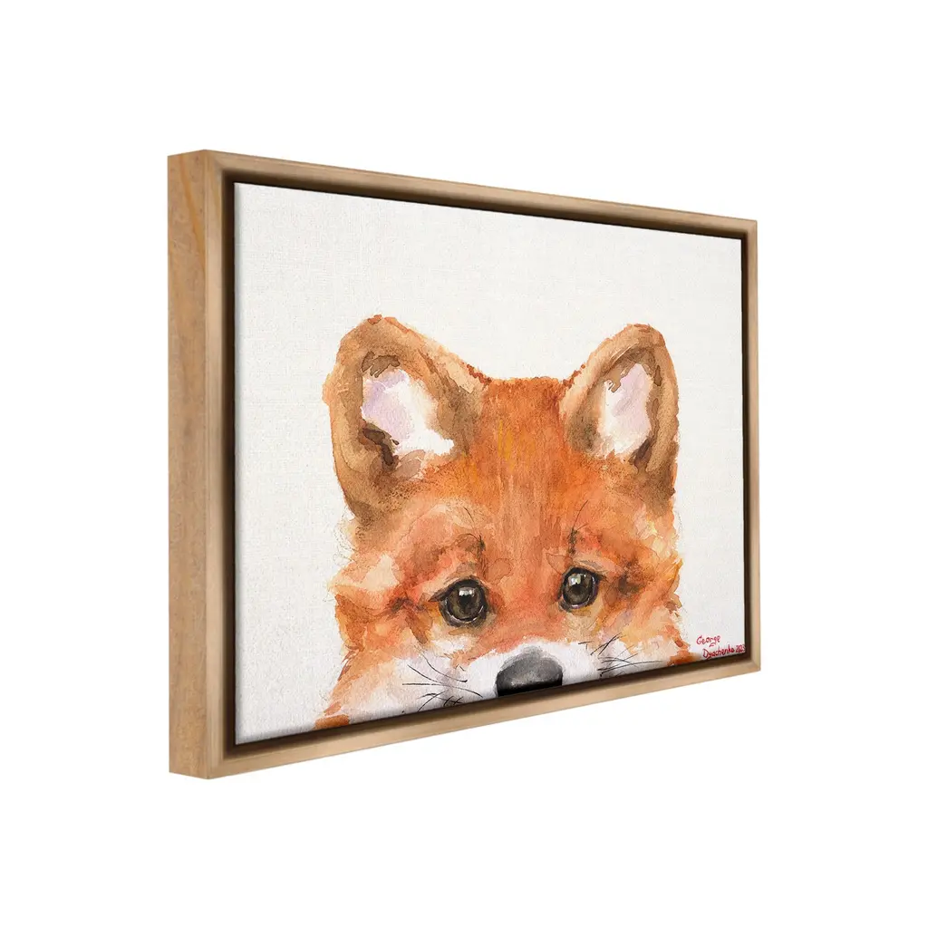 Stupell Fox Cub Peeking Framed Floater Canvas Wall Art Design By Georgedyachenkoart - 21 X 17 - Brown