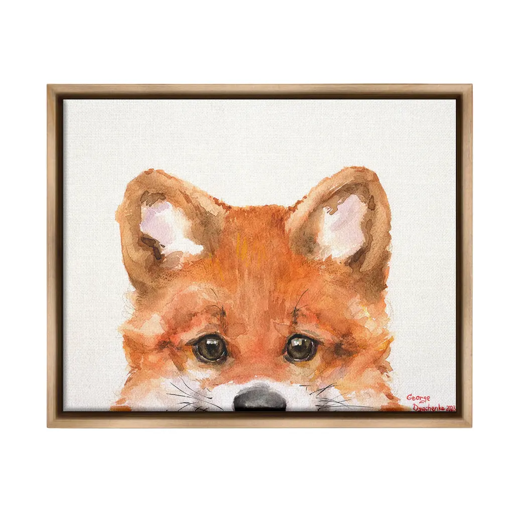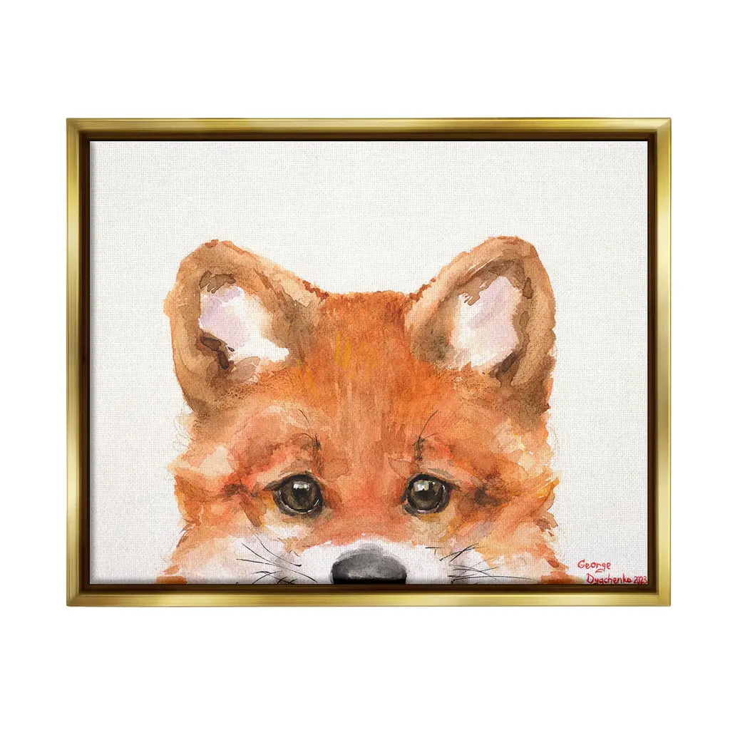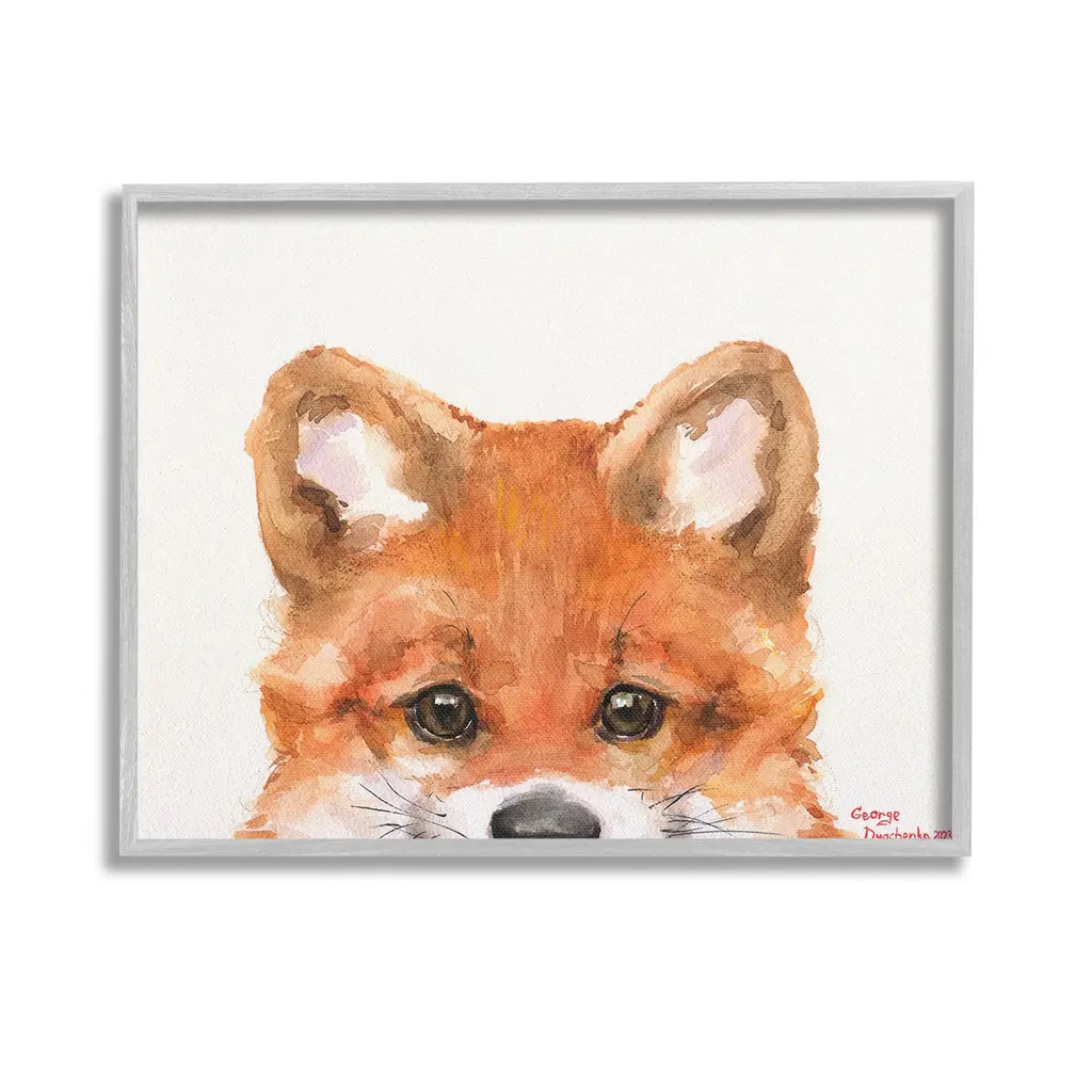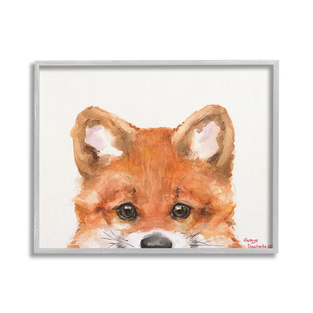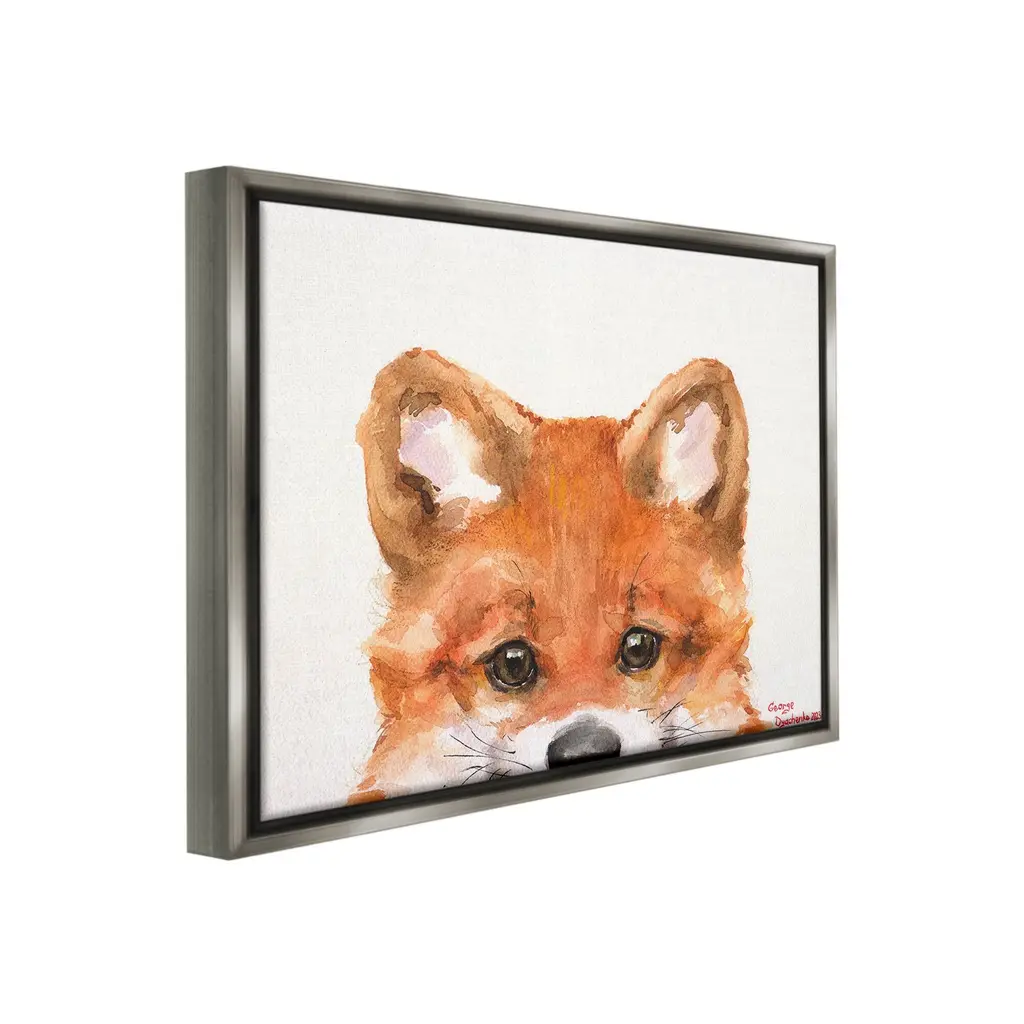 Stupell Fox Cub Peeking Framed Floater Canvas Wall Art Design By Georgedyachenkoart - 21 X 17 - Grey