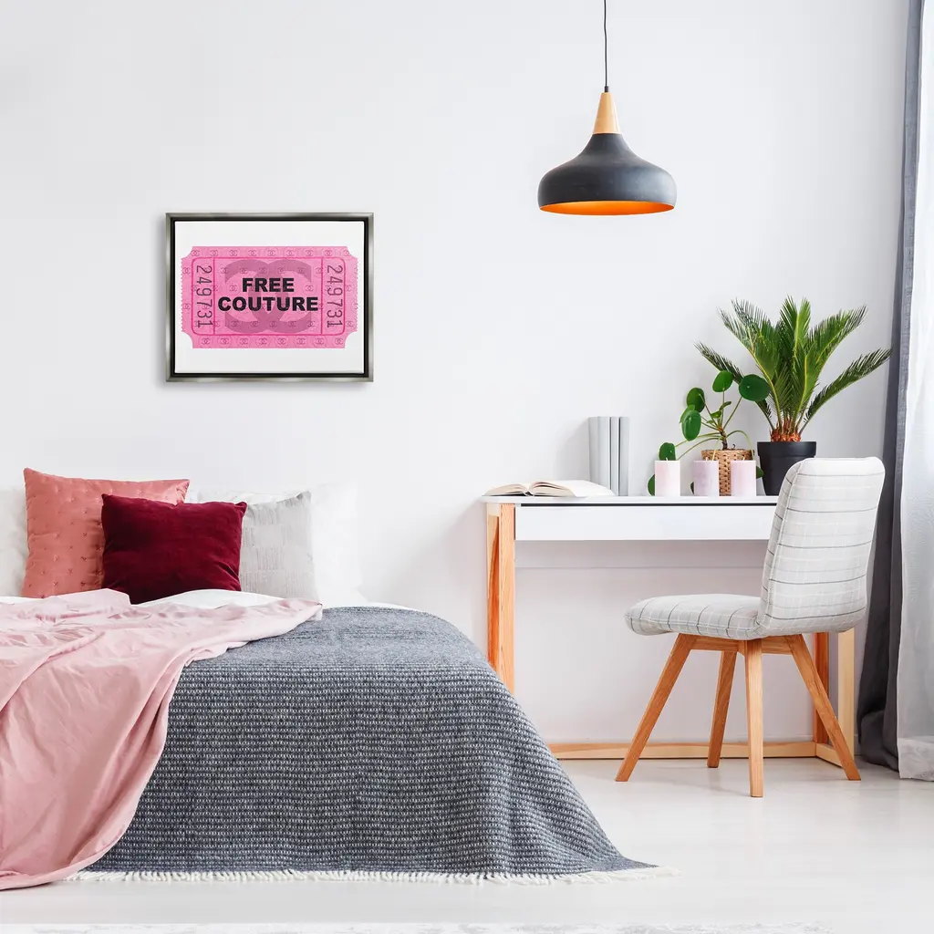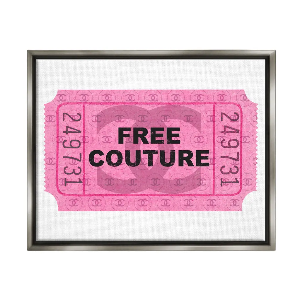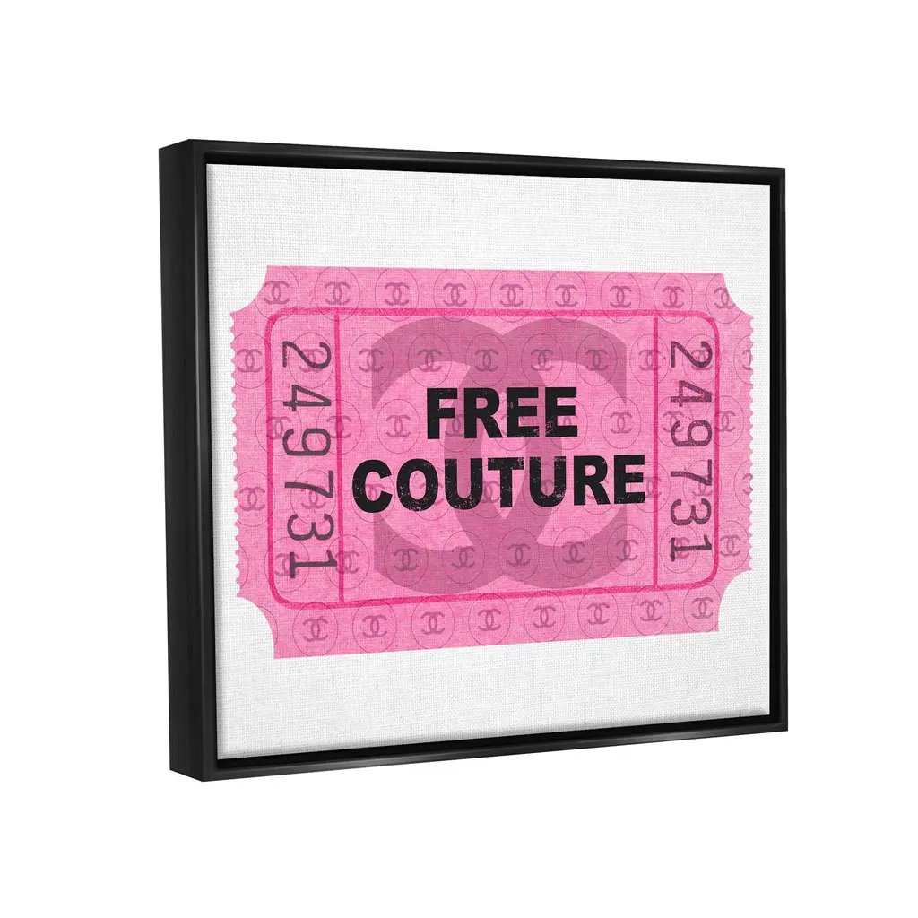 Elevate your home or office to the next level with Stupell Framed Floating Canvas Wall Art. Our premium hand-stretched canvas is mounted securely into a sturdy lightweight frame. The museum-style gap between the wrapped canvas and the box frame gives the illusion of floating artwork. Stupell Wall Art is made in the USA.Features: Dimensions: 21 x 1.7 x 17 Frame, 20 x 1.5 x 16 Canvas ArtFloating Frame Sizes Include Standard: 21 x 1.7 x 17 Oversized: 31 x 1.7 x 25Wall Art is Ready to Hang - No Installation or Hardware Needed. For Easy Set Up Lean or Layer Artwork on Shelf or Against Wall.Our elevated 1.7" Thick Floating Frame is the perfect complement to our canvas style Wall Art. We use only the highest quality inks in house with industry leading printing solutions. Canvas is hand stretched over a durable wood foundation and then mounted securly into a Modern Box Frame. Made in the USA.Artwork Relates To: Glam, Fashion, Ticket, Ticket Stub, Free CoutureDesign by Lil' Rue