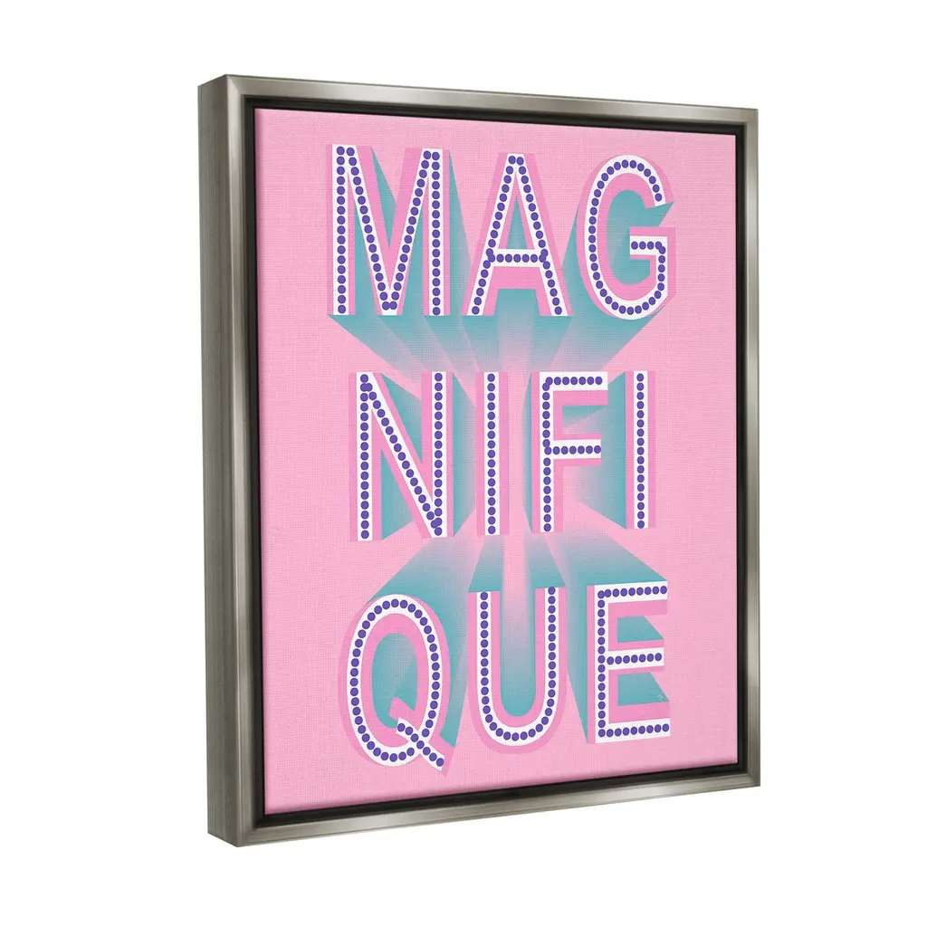 Elevate your home or office to the next level with Stupell Framed Floating Canvas Wall Art. Our premium hand-stretched canvas is mounted securely into a sturdy lightweight frame. The museum-style gap between the wrapped canvas and the box frame gives the illusion of floating artwork. Stupell Wall Art is made in the USA.Features: Dimensions: 17 x 1.7 x 21 Frame, 16 x 1.5 x 20 Canvas ArtFloating Frame Canvas Products are available in sizes 17"x21" and 25"x31". All Floating Frame Canvas Products have a 1.7" Depth.Wall Art is Ready to Hang with Hardware Free Hanging. No Installation required. For Easy Set Up Lean or Layer Artwork on Shelf or Against Wall. Artwork is Permently Fixed into the Frame.Our elevated 1.7" Thick Floating Frame is the perfect complement to our canvas style Wall Art. We use only the highest quality inks in house with industry leading printing solutions. Canvas is hand stretched over a durable wood foundation and then mounted securly into a Modern Box Frame. Made in the USA.Artwork Relates To: Phrase, Pattern, Neon, Abstract, Modern, French, MagnifiqueDesign by Martina Pavlova