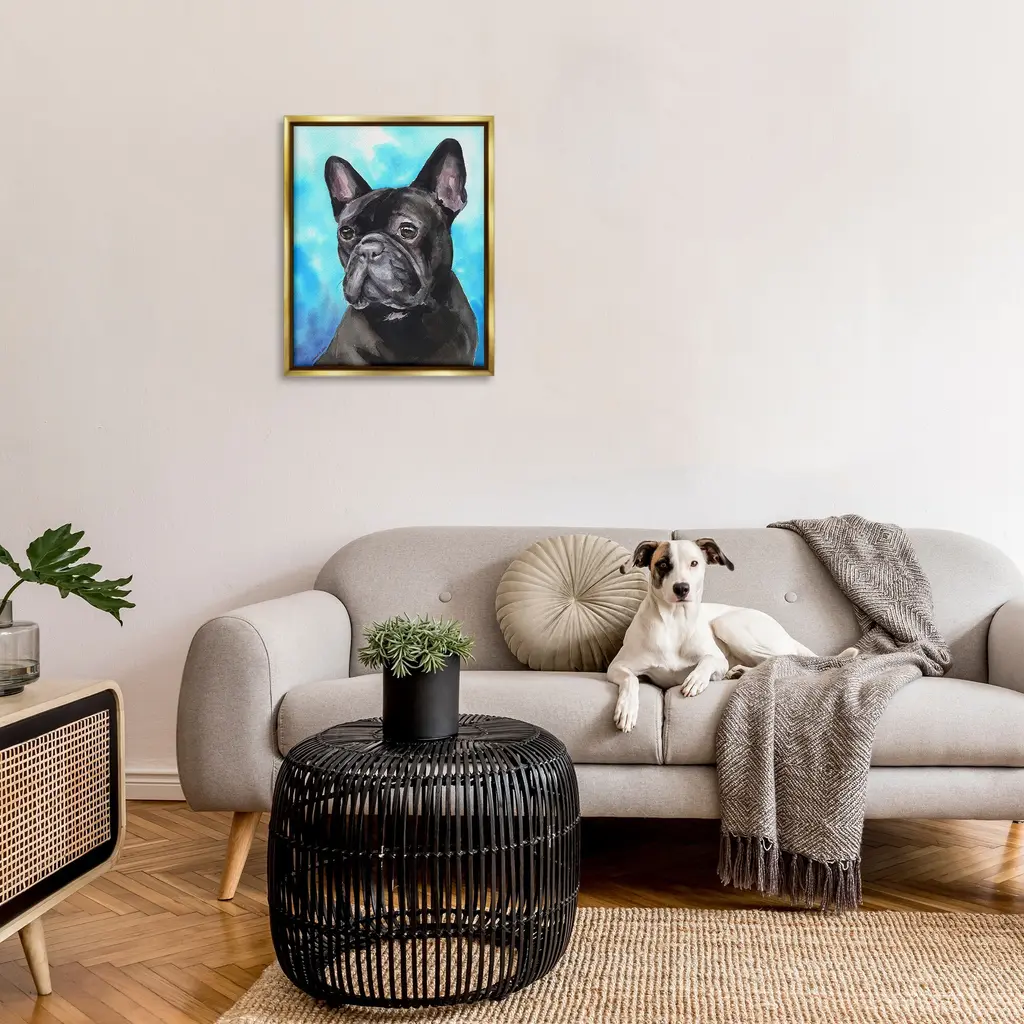 Elevate your home or office to the next level with Stupell Framed Floating Canvas Wall Art. Our premium hand-stretched canvas is mounted securely into a sturdy lightweight frame. The museum-style gap between the wrapped canvas and the box frame gives the illusion of floating artwork. Stupell Wall Art is made in the USA.Features: Dimensions: 17 x 1.7 x 21 Frame, 16 x 1.5 x 20 Canvas ArtFloating Frame Canvas Products are available in sizes 17"x21" and 25"x31". All Floating Frame Canvas Products have a 1.7" Depth.Wall Art is Ready to Hang with Hardware Free Hanging. No Installation required. For Easy Set Up Lean or Layer Artwork on Shelf or Against Wall. Artwork is Permently Fixed into the Frame.Our elevated 1.7" Thick Floating Frame is the perfect complement to our canvas style Wall Art. We use only the highest quality inks in house with industry leading printing solutions. Canvas is hand stretched over a durable wood foundation and then mounted securly into a Modern Box Frame. Made in the USA.Artwork Relates To: Animal, Canine, Dog, Pet, Portrait, Painting, French BulldogDesign by GeorgeDyachenkoArt