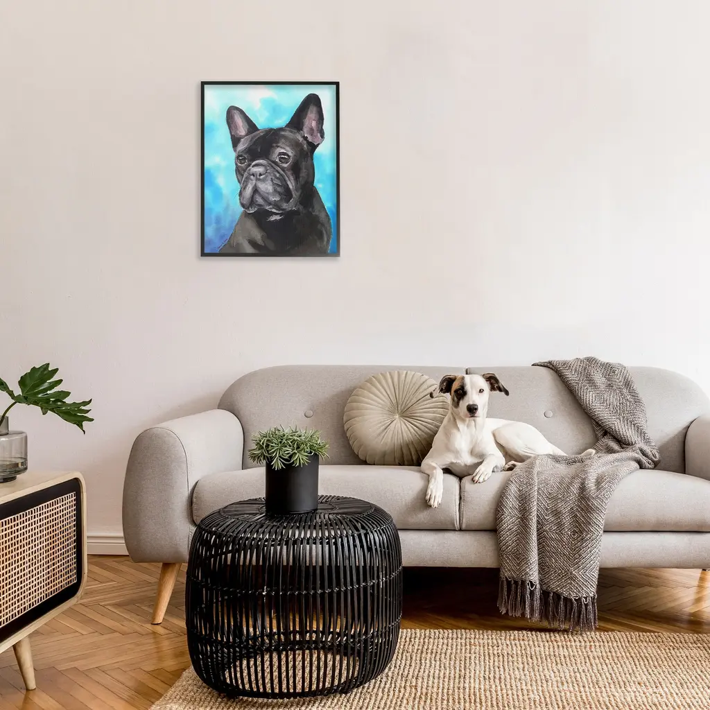Add dimension to any room with our textured Framed Giclee Artwork. Our framed artwork is securely mounted into a 1.5-inch thick wood grain frame and ready to hang. Frames are available in three alluring styles: black, gray farmhouse and white. In addition, you should check out our oversized options if you want a statement piece. Stupell Wall Art is made in the USA.Features: Dimensions: 11 x 1.5 x 14 FramedFramed Giclee Products are available in the sizes 11"x14", 16"x20" or 24"x30". All Framed Giclee Products have a 1.5" Depth. Wall Art is Ready to Hang with Hardware Free Hanging. No installation required. For Easy Set Up Lean or Layer Artwork on Shelf or Against Wall.Our giclée prints are carefully mounted on a durable MDF backing, and then perfectly finished in a 1.5 inch thick woodgrain frame. Mounted frame colors include black, gray farmhouse and white. Made In USA.Artwork Relates To: Animal, Canine, Dog, Pet, Portrait, Painting, French BulldogDesign by GeorgeDyachenkoArt