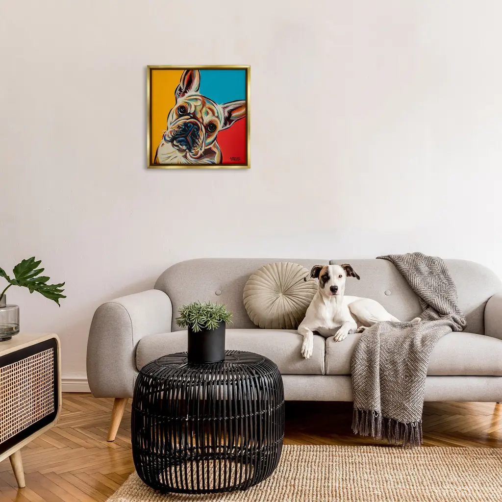 Elevate your home or office to the next level with Stupell Framed Floating Canvas Wall Art. Our premium hand-stretched canvas is mounted securely into a sturdy lightweight frame. The museum-style gap between the wrapped canvas and the box frame gives the illusion of floating artwork. Stupell Wall Art is made in the USA.Features: Dimensions: 18 x 1.7 x 18 Frame, 17 x 1.5 x 17 Canvas ArtFloating Frame Canvas Products are available in sizes 18"x18" and 25"x25". All Floating Frame Canvas Products have a 1.7" Depth.Wall Art is Ready to Hang with Hardware Free Hanging. No Installation required. For Easy Set Up Lean or Layer Artwork on Shelf or Against Wall. Artwork is Permently Fixed into the Frame.Our elevated 1.7" Thick Floating Frame is the perfect complement to our canvas style Wall Art. We use only the highest quality inks in house with industry leading printing solutions. Canvas is hand stretched over a durable wood foundation and then mounted securly into a Modern Box Frame. Made in the USA.Artwork Relates To: Animal, Pet, Dog, Painting, Modern, Pop, Abstract, French BulldogDesign by Carolee Vitaletti