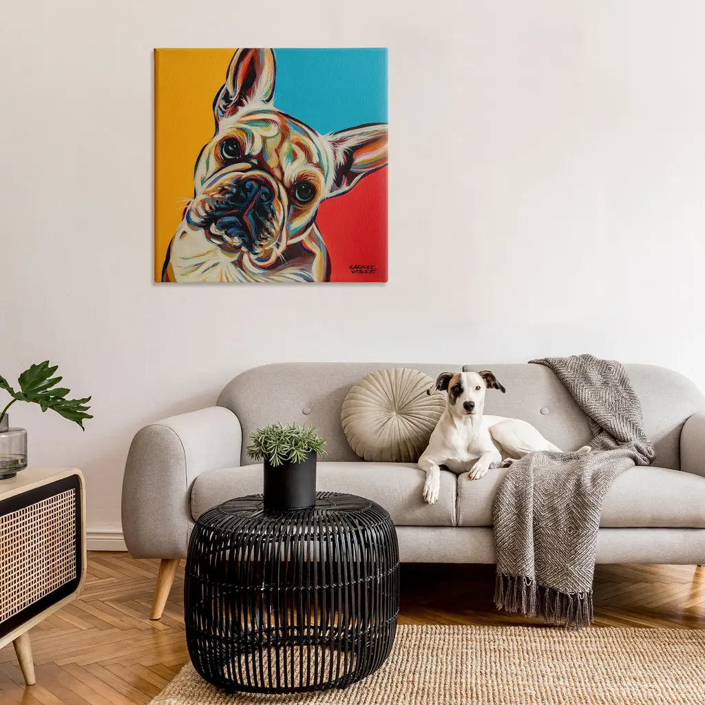 Stupell French Bulldog Portrait Chroma Pop Red Yellow Blue Canvas Wall Art - 36 X 36